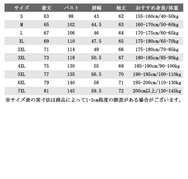| サイズ | S M L XL 2XL 3XL 4XL 5XL 6XL 7XL |