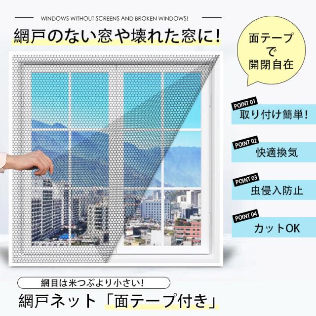 即納 網戸ネット 面テープ付きあみ戸 カット可 網戸キット メッシュ 万能網戸 開閉自在 張り替え 補修 窓 貼るだけ 簡単 DIY 虫除けネット 防虫 防蚊 蚊帳