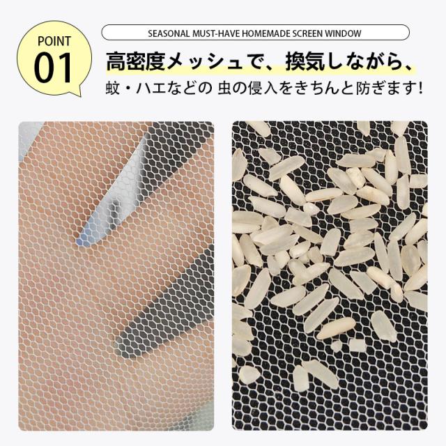 網戸ネット 白 黒 1.5m 面テープ付き あみ戸 カット可 網戸キット メッシュ 万能網戸 開閉自在 張り替え 補修 窓 貼るだけ 取り付け 簡単 DIY 虫除けネット 防虫