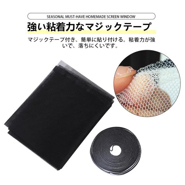 簡単取り付け/防虫網/玄関網戸/網戸補修/自由にカットOK/網目が細かい/約150cm×130cm/黒/DIY/面テープ/ネット/簡易網戸/蚊/網戸カーテン/メッシュネット/取り外し簡単/細かい/開閉自在/開閉自由