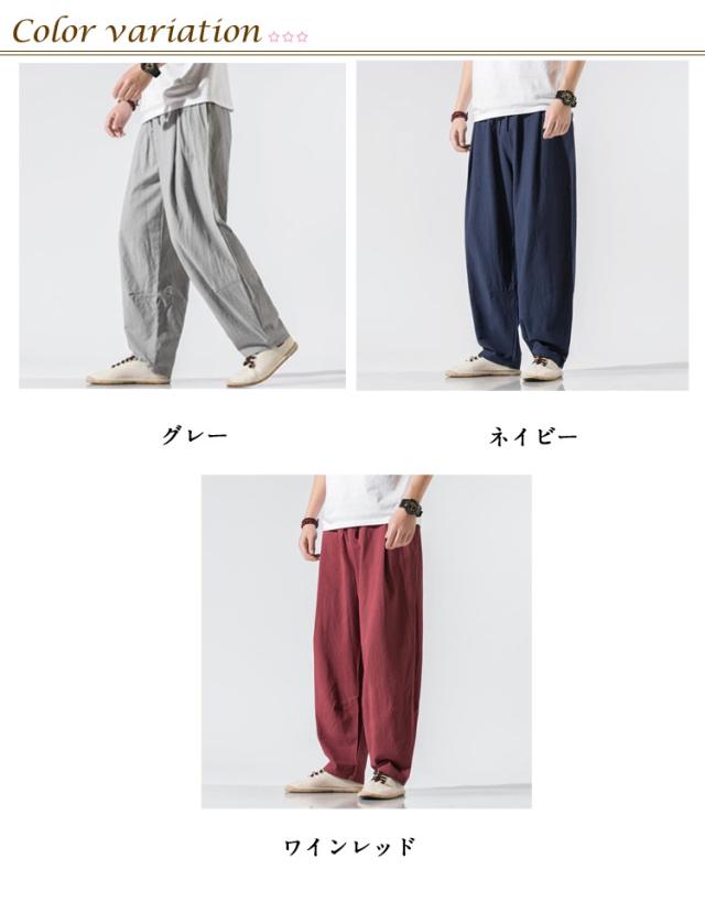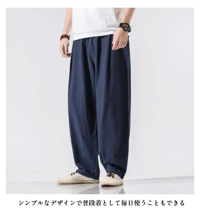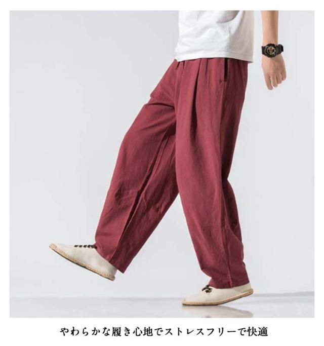 チノパン イージーパンツ ワイドパンツ メンズ ワイドパンツ 太め ロングパンツ バギーパンツ 無地 リラックス 薄手 ボトムス ウェストゴム コットン オールシーズン 父の日 長ズボン サルエル 春 夏 秋 ダンス衣装 部屋着