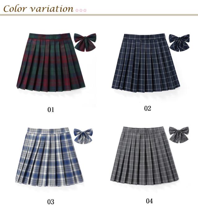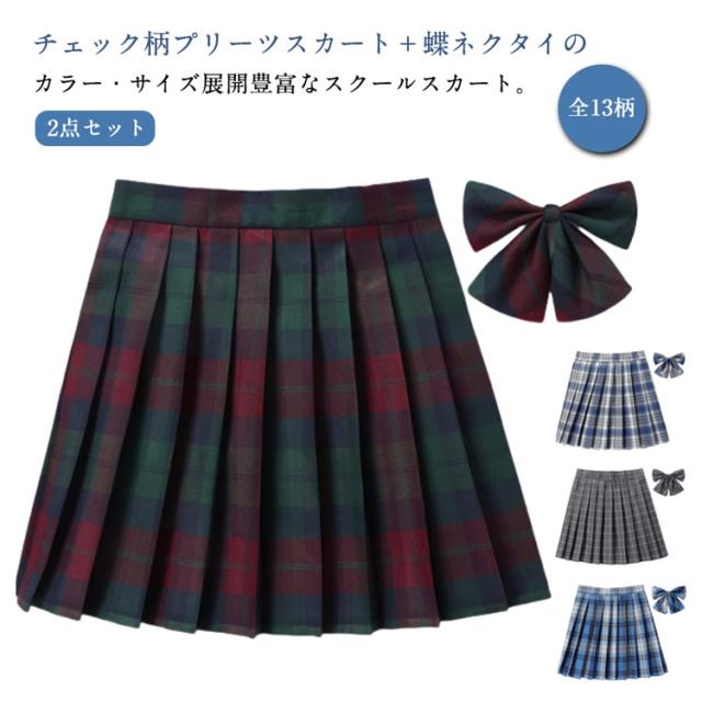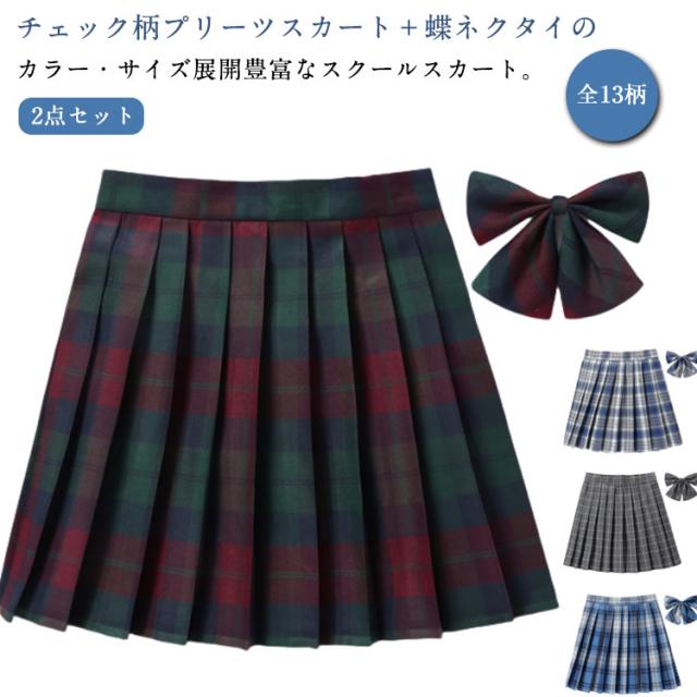 | チェック柄プリーツスカート+蝶ネクタイの2点セット 全13柄 カラー・サイズ展開豊富なスクールスカート。 学生制服にも、なんちゃって制服にもおすすめです。 | |