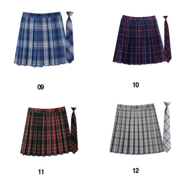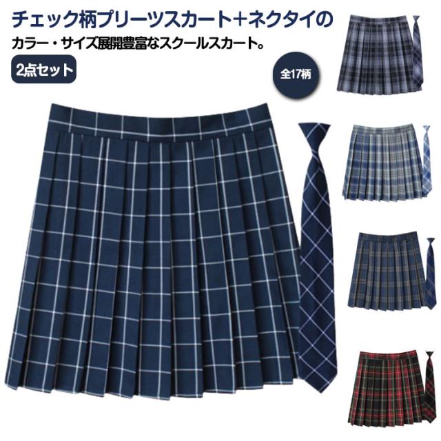 | チェック柄プリーツスカート+ネクタイの2点セット 全17柄 カラー・サイズ展開豊富なスクールスカート。 学生制服にも、なんちゃって制服にもおすすめです。 | |