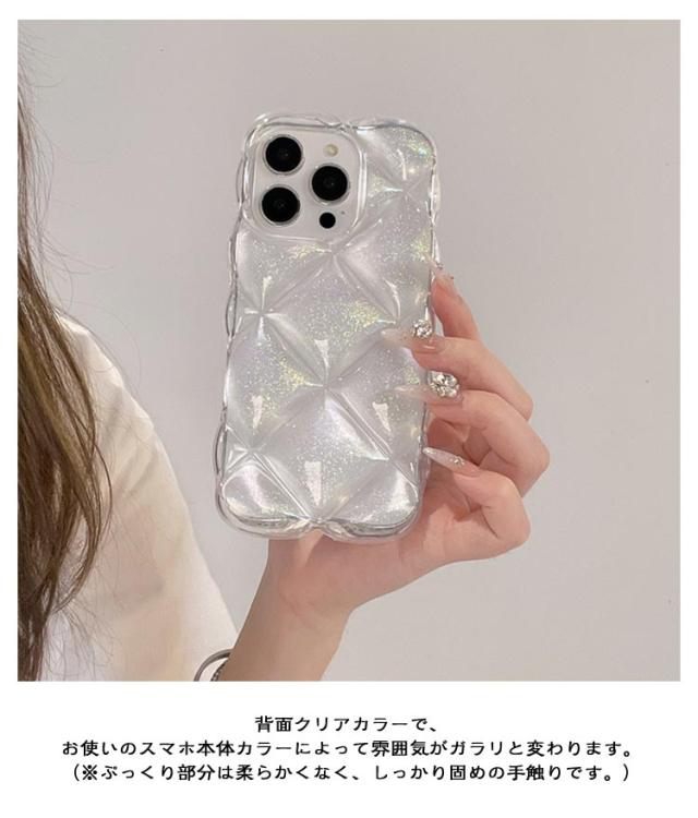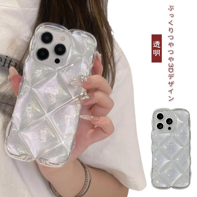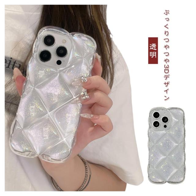 ラメ クリア つやつや クリアケース キラキラ 韓国 pro ぽこぽこ iPhone16 ぷっくり オーロラ 3D 透明 ぷくぷく ケース iPhone14 iPhone13 iPhone15 max ケース カバー かわいい おしゃれ シンプル キルティング風 iPhoneケース