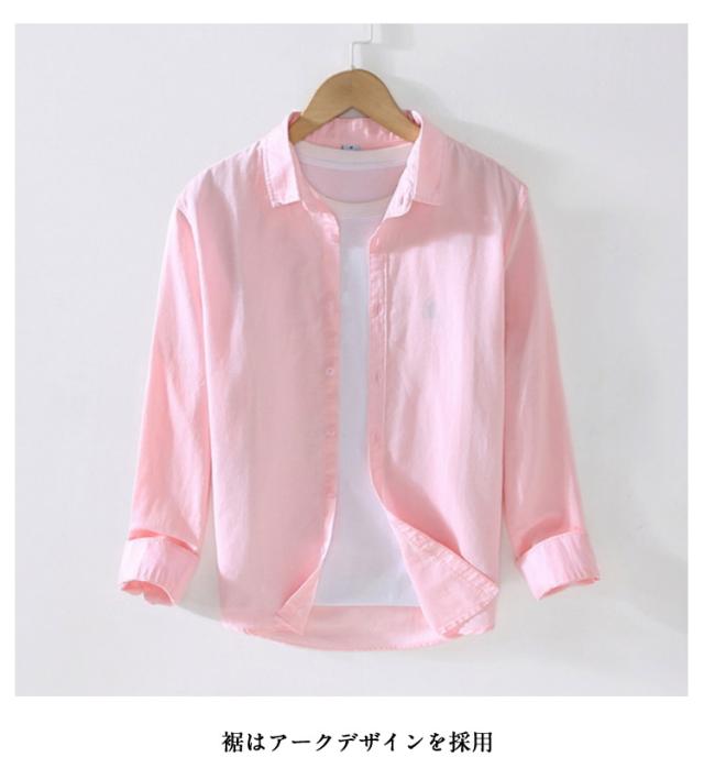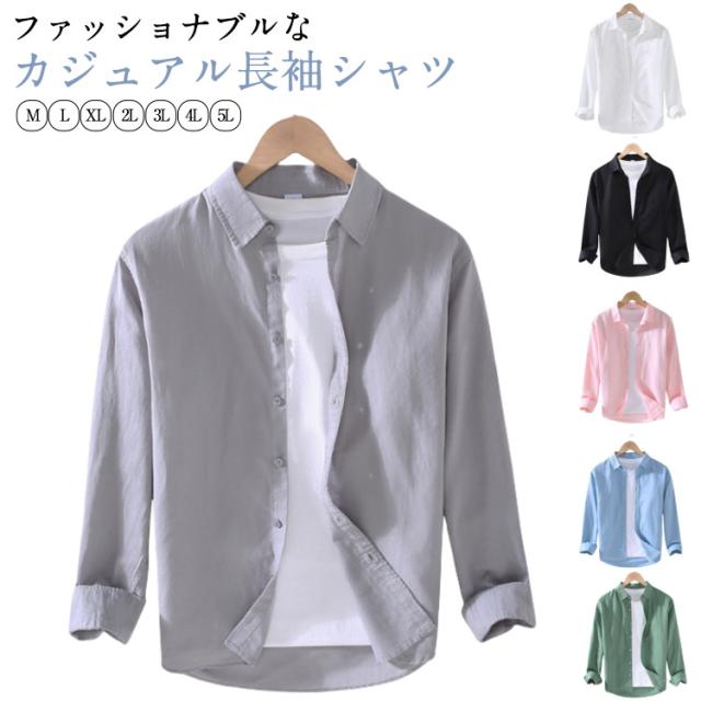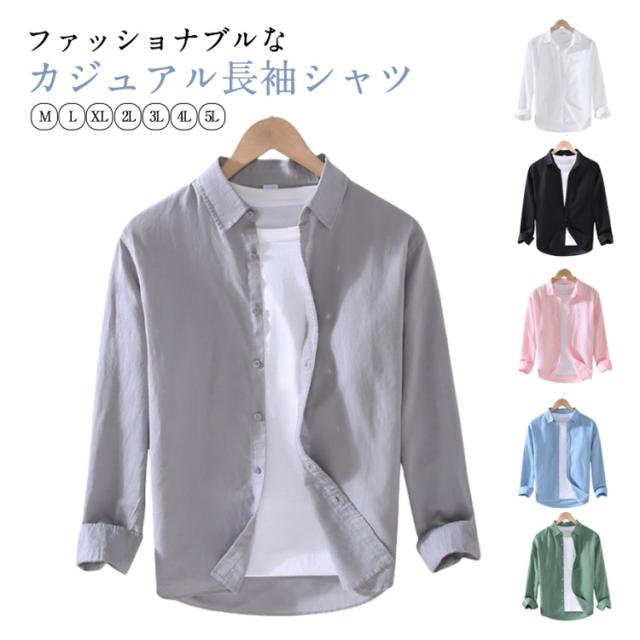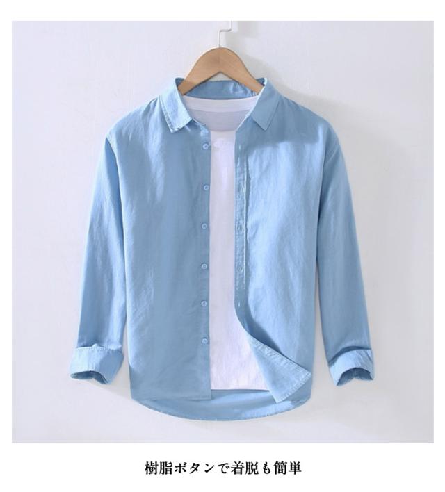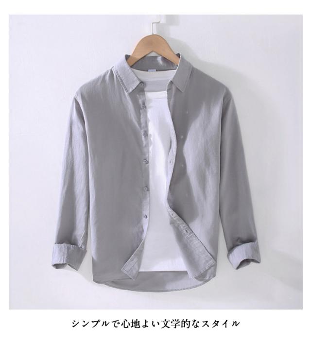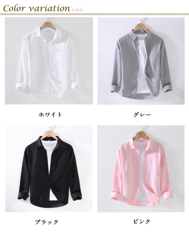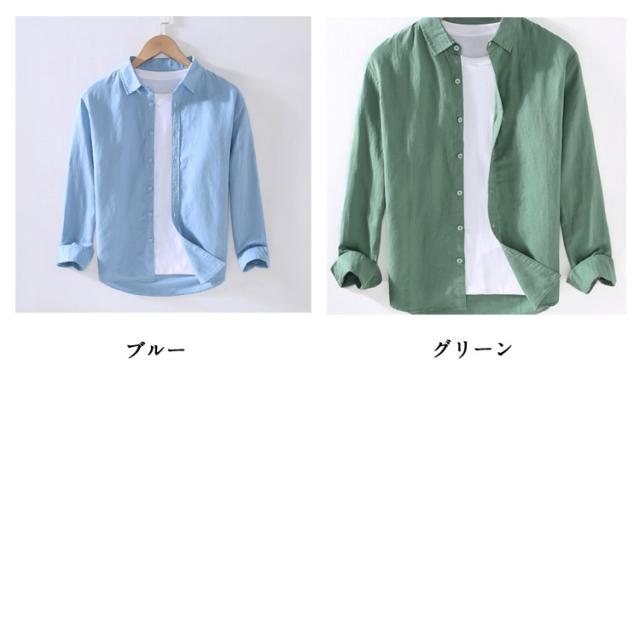 無地 メンズ 春夏 麻 ビジネス シャツ カジュアルシャツ 綿麻シャツ ブラウス 長袖シャツ リネン 夏シャツ 通勤 開襟 シャツ 麻シャツ レギュラーカラー シャツ トップス 薄手 春 リネン 夏 コーデ
