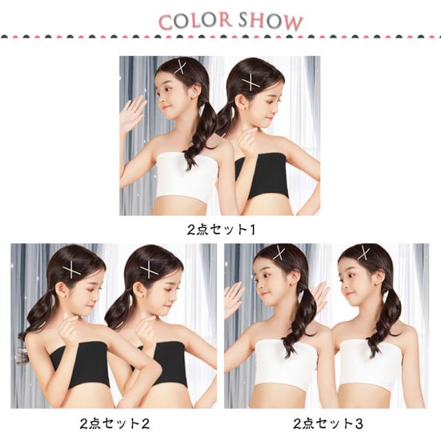 | 【ブラック、ホワイト2色!】【2枚セット】 柔らかく着心地の良いストレッチ性のある生地。 シンプルな子供向けチューブトップブラです。 伸縮性抜群なので締め付け感もなくノンストレスな着心地で体にフィット! パットを取り外してお洗濯すると型崩れも防げます。 ヒップホップダンスの衣装やレッスン着におすすめ。 | |