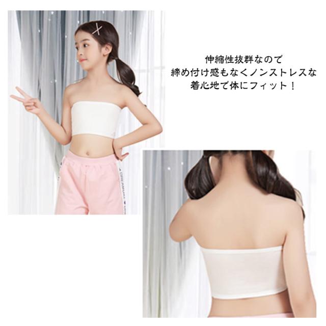【2点セット】チューブトップ キッズ ダンス インナー カップ付き 無地 ダンス衣装 ベアトップ ブラトップ 子供服 ブラック ジュニア 伸縮素材 ハーフトップ ホワイト こども ファーストブラ スポーツブラ 女の子 下着 S M L