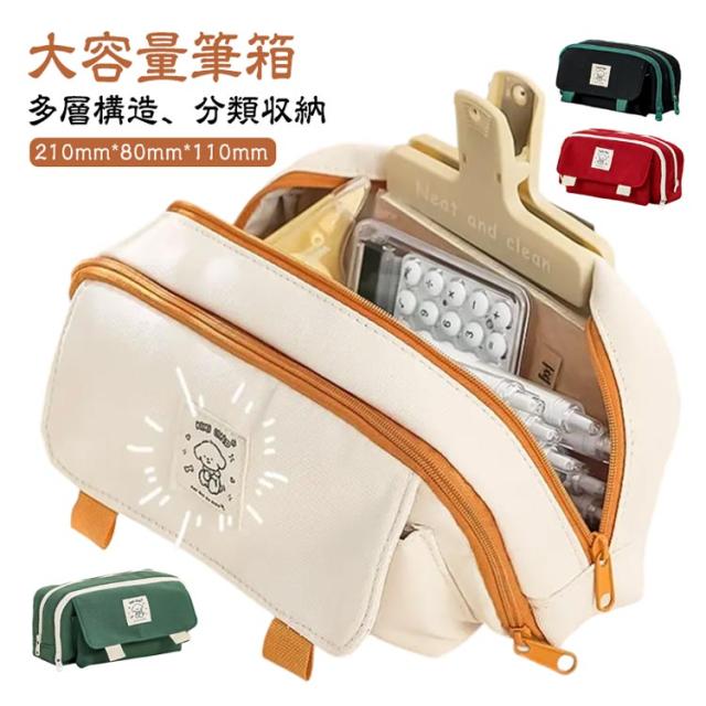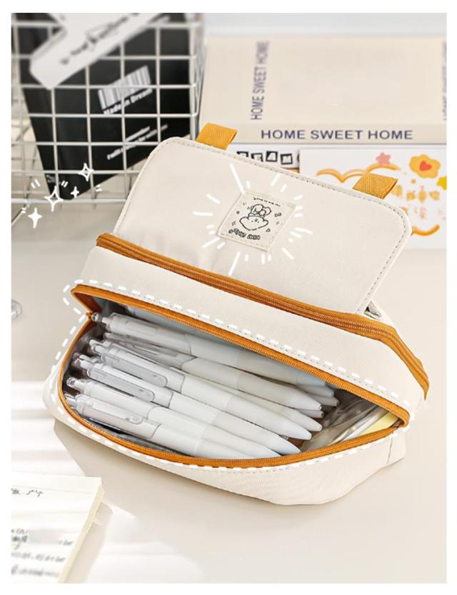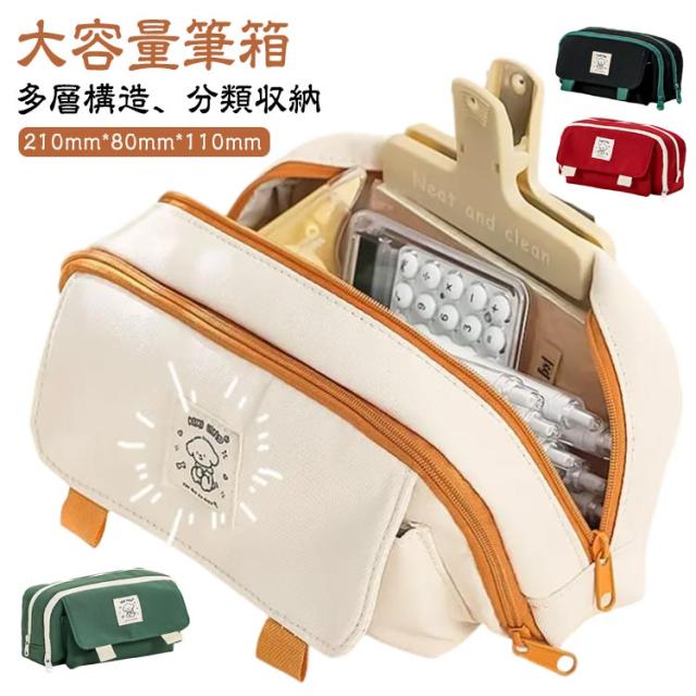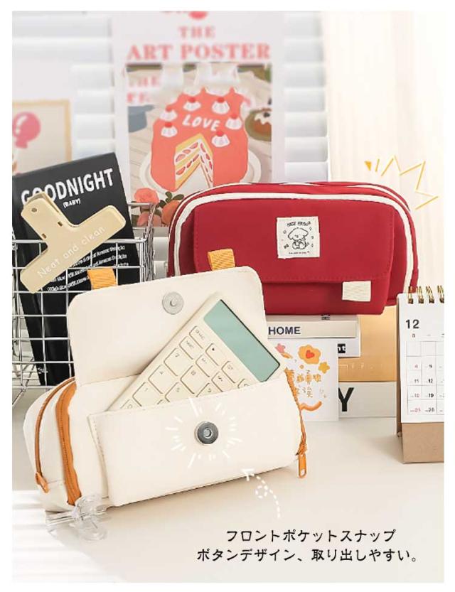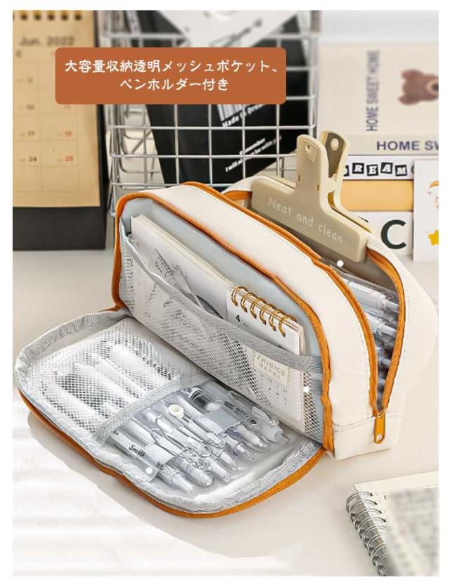 | 【大容量筆箱】 多層構造、分類収納 大容量収納透明メッシュポケット、ペンホルダー付き スムーズなジッパー フロントポケットスナップボタンデザイン、取り出しやすい。 | |