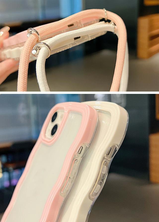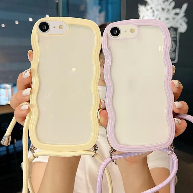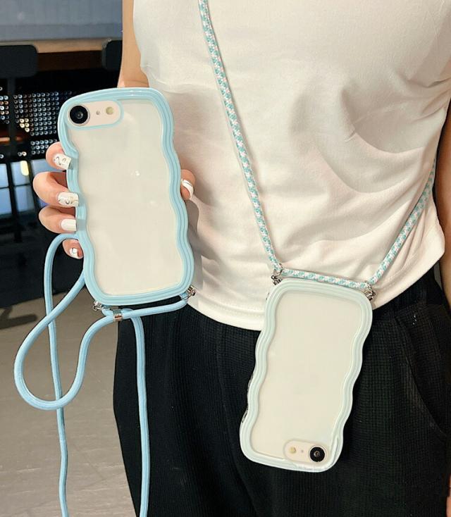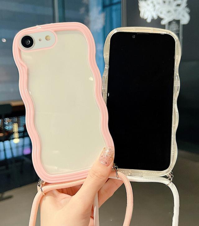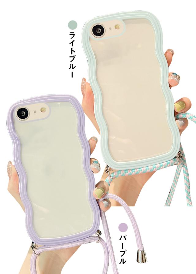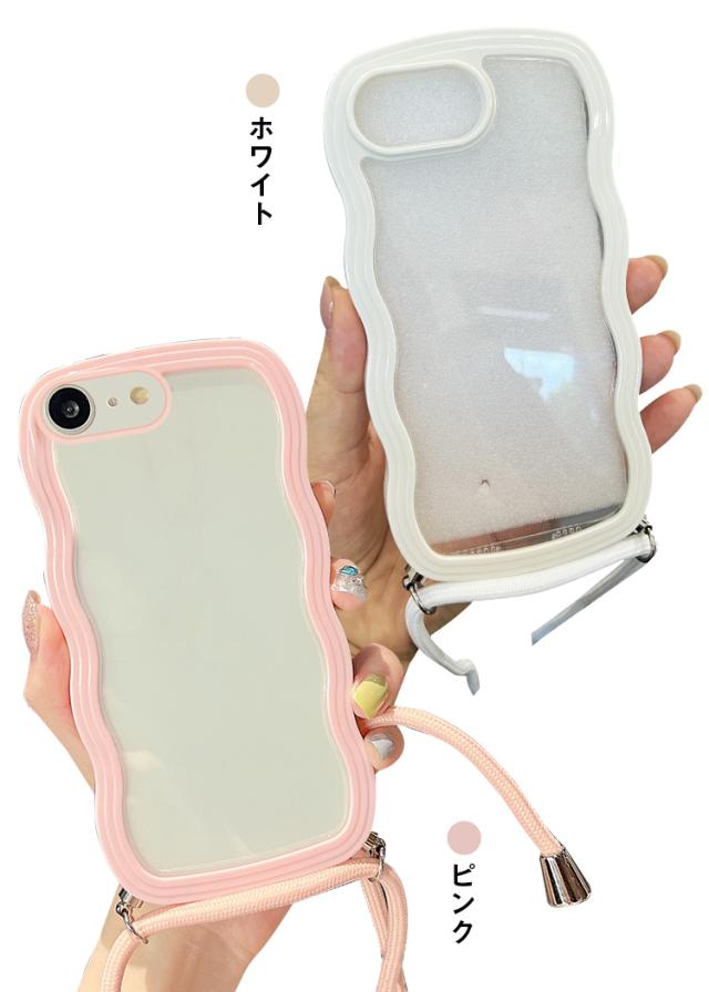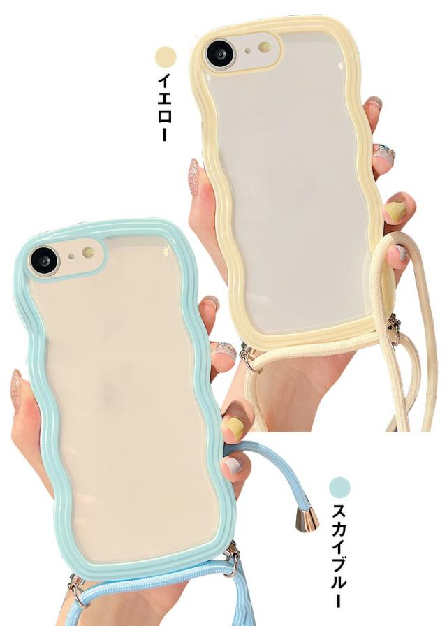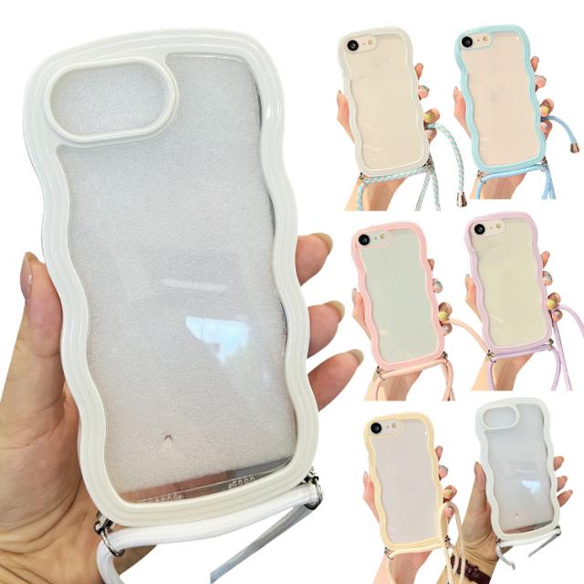 iPhone17e / iPhone16e ケース スマホショルダー カバー ウェーブ 波型 クリアカバー 透明 TPU ソフト 滑り止め ケース 波状 可愛い お洒落 ショルダーストラップ 肩掛けベルト付き 長さ調節可能 シンプル Apple アップル アイフォン 17e / 16e スマートフォン/スマフォ/スマホケース/カバー
