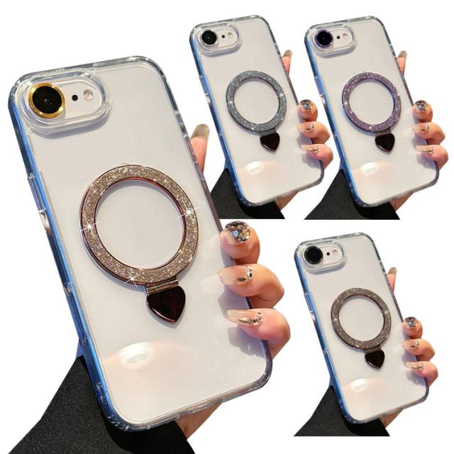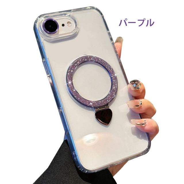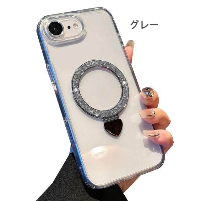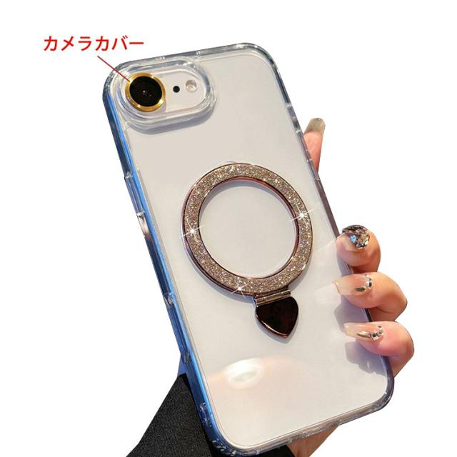 iPhone17e / iPhone16e クリア ケース カバー グリッター きらきら かわいい レディース 透明 一体型リング付き スタンド機能 カメラレンズ保護 強化ガラス耐衝撃 衝撃吸収 Apple アップル アイフォン 17e / 16e