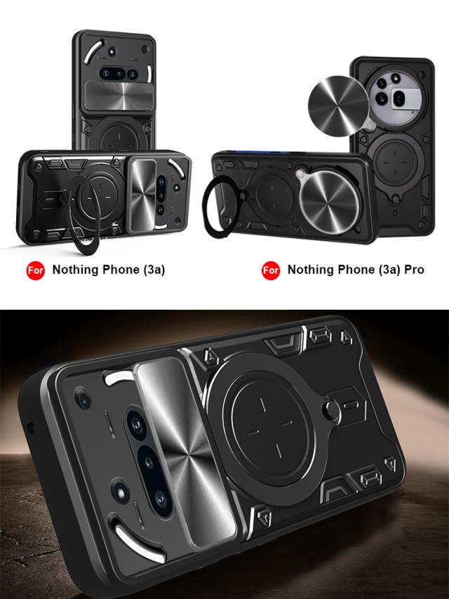 Nothing Phone 3a ケース 3a Pro カバー スライド式カメラレンズカバー付き レンズ保護 一体型スマホリング付き スタンド機能 2重構造 ナッシング フォン3a/3aプロ アンドロイド おすすめ おしゃれ スマホ スマートフォンケース/カバー