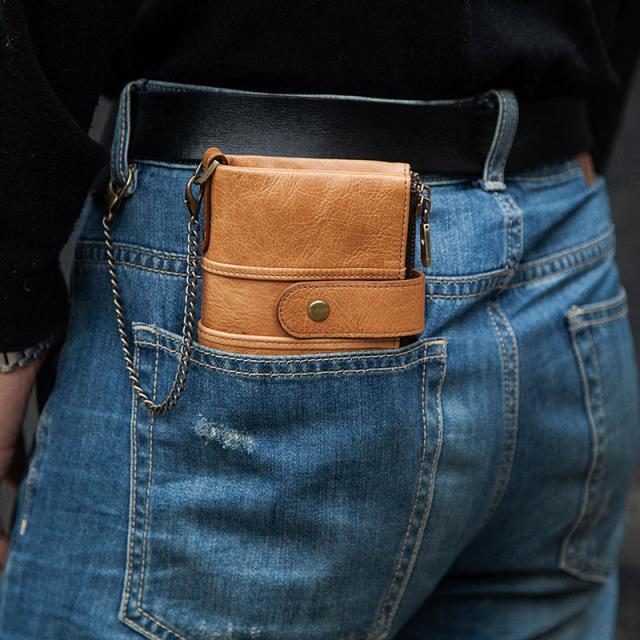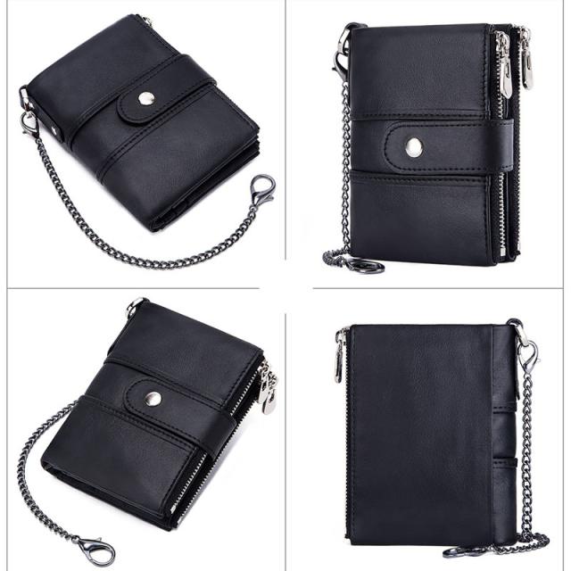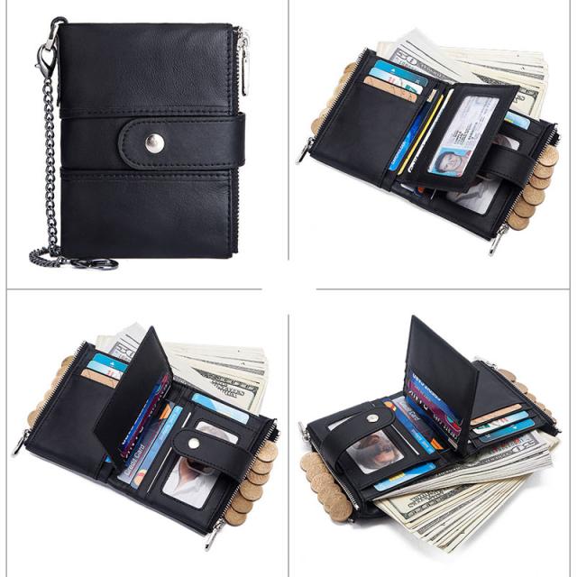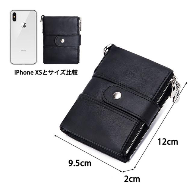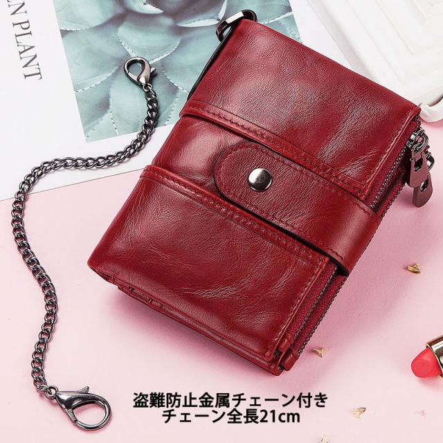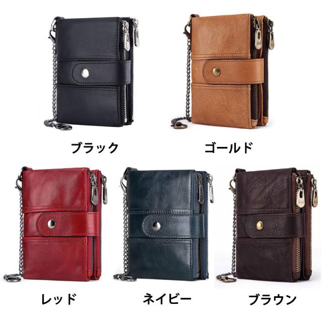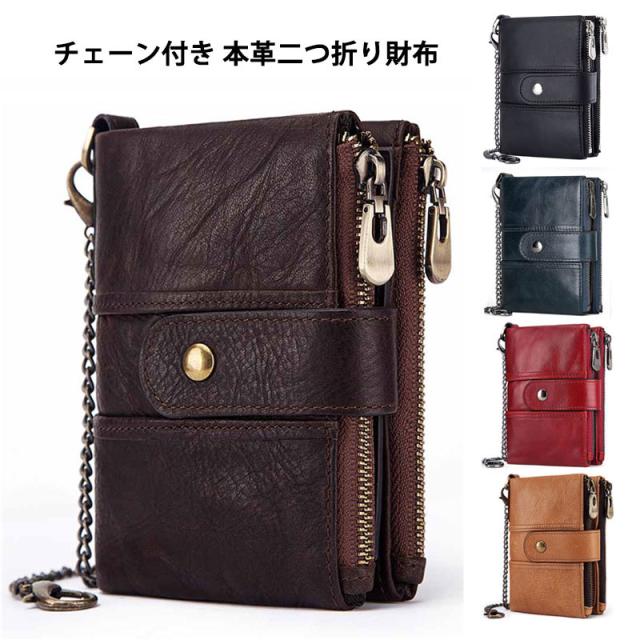 本革 二つ折り財布 メンズ レディース 財布 RFID スキミング防止 二つ折り レザー ウォレット 盗難防止 チェーン付き コインケース ジッパー 柔らかい 札入れ カード入れ 小銭入れ 丈夫 コンパクト おしゃれ 人気 プレゼント スタイリッシュ 折りたたみ財布 カード14枚収納