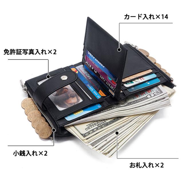 本革 二つ折り財布 メンズ レディース 財布 RFID スキミング防止 二つ折り レザー ウォレット 盗難防止 チェーン付き コインケース ジッパー 柔らかい 札入れ カード入れ 小銭入れ 丈夫 コンパクト おしゃれ 人気 プレゼント スタイリッシュ 折りたたみ財布 カード14枚収納 本革財布 オシャレ シンプル RFIDブロック 二つ折りウォレット レザー 本革ウォレット 財布メンズ 財布レディース ビジネス プレゼント ギフト 盗難防止チェーン付き カード収納 大容量