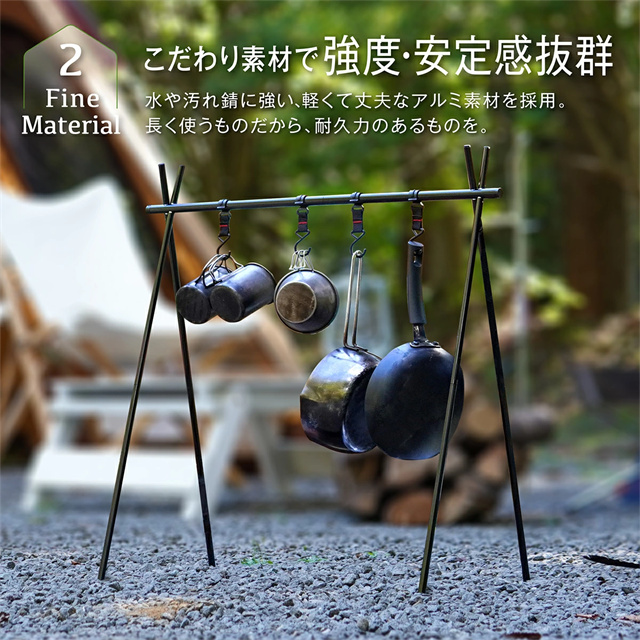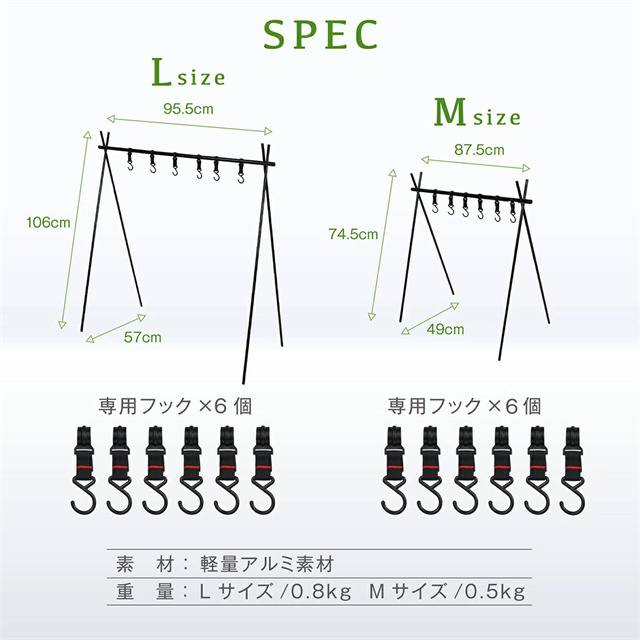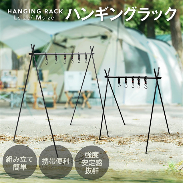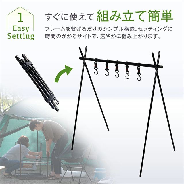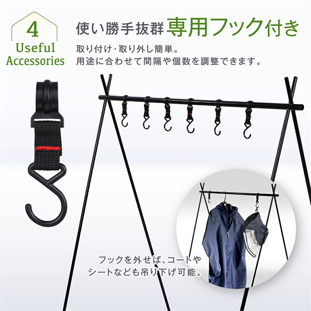 ハンギングラック ハンギングスタンド ランタンスタンド 物干しフック付 テント泊 ハンガーラック アルミ合金 折り畳み 組み立て簡単 超軽量 収納便利 ファミリーキャンプ 室内 アウトドア キャンプ 専用収納袋付き