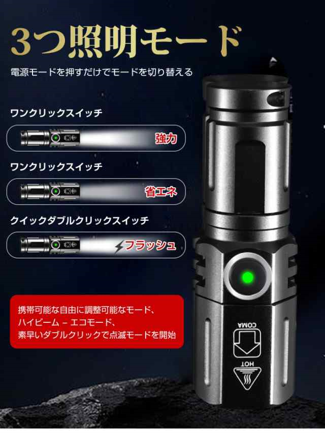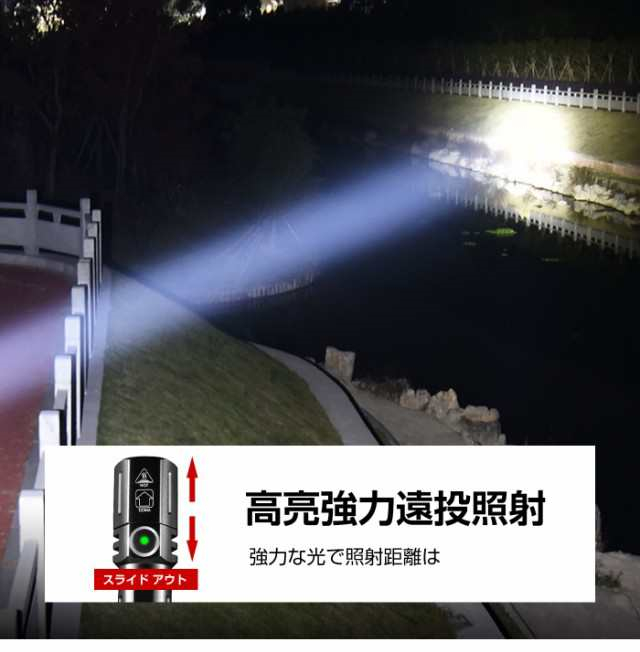 冬新作 送料無料 懐中電灯 懐中電灯小型 led 懐中電灯充電式 3種点灯モード ズーム機能 USB 充電式懐中電灯 2000ルーメン高輝度 電池残量 IP68防水機能