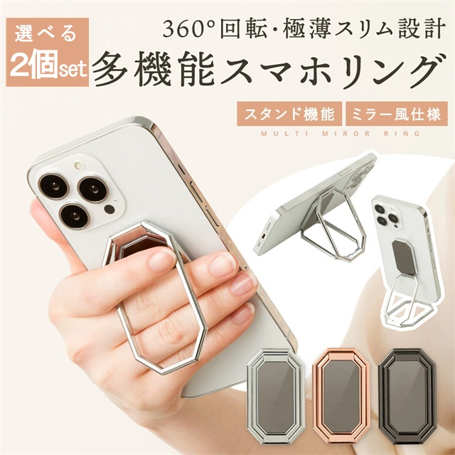 送料無料 冬新作 スマホリング おしゃれ スマホスタンド スマホ リング スタンド 落下防止 回転 折りたたみ ミラー風 極薄 フラット 薄型 スリム フレーム シンプル 大人 可愛い iPhone 全機種対応 かわいい 韓国 2段階調整 ホールド