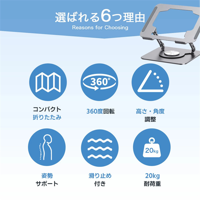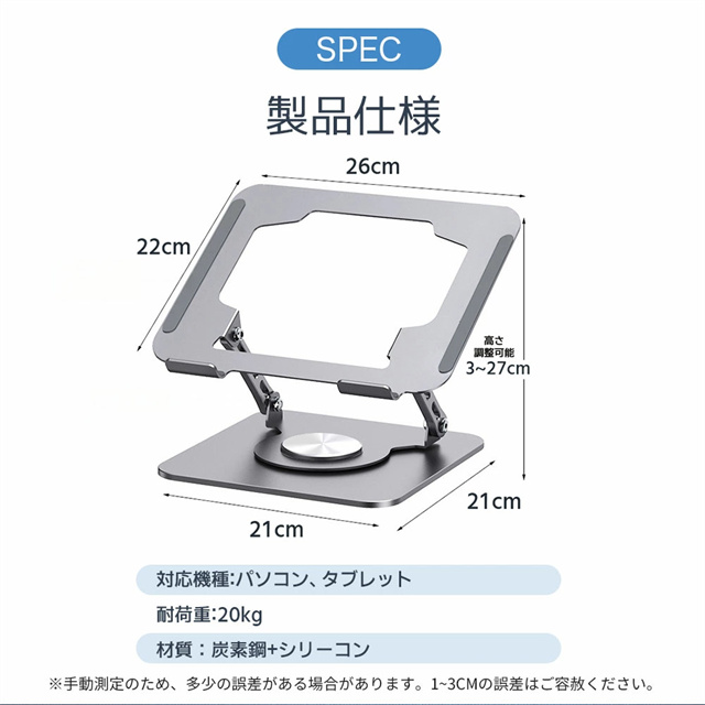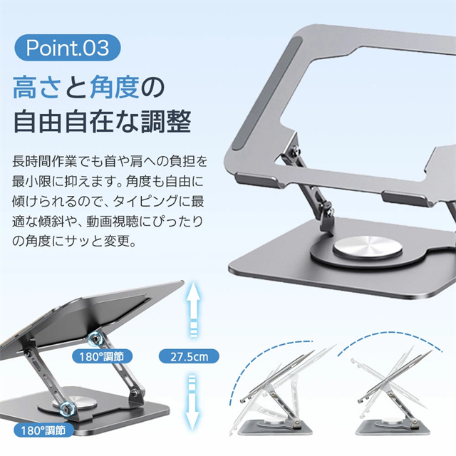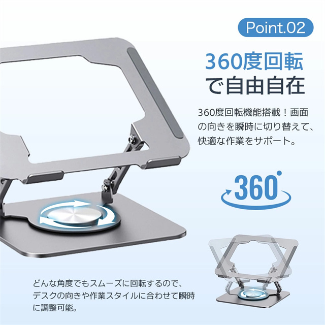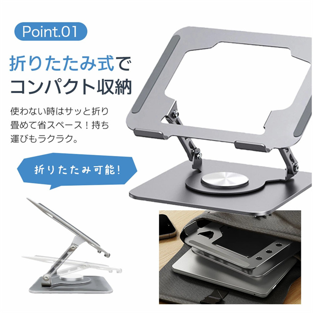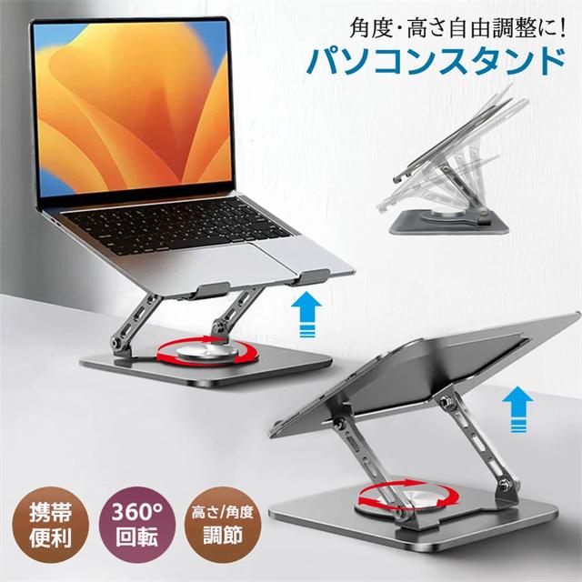 送料無料 冬新作 ノートパソコン スタンド アルミ合金 pcスタンド 高度 角度調節可能 折畳み パソコンスタンド 滑り止め タブレットスタンド 放熱対策 軽量 パソコン 置き 360度回転 ノートパソコンスタンド 折りたたみ 耐荷重20kg