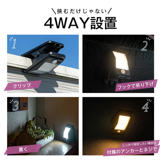 送料無料 冬新作 クリップ式 ソーラーライト センサーライト 防災 屋外 LEDライト 玄関 人感センサー 庭ガレージ 防水 明るい 人感 ソーラー 駐車場 屋外照明 屋外用 暖色 クリップ ライト パネル ガーデンライト 庭 USB充電式 防犯