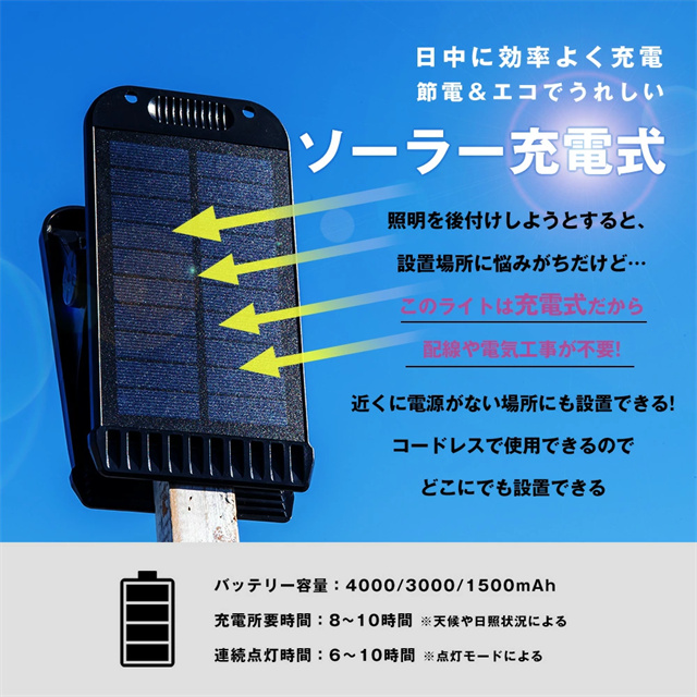 送料無料 新作 スポットライト LEDソーラーライト アウトドア 屋外 照明 ソーラー ガーデンライト 投光機 LED投光器 照明ライト 防災灯 太陽光発電 防犯 ワークライト 昼白色 電球色 LEDライト 自動的点灯 ソーラー充電 配線工事不要 超省エネ 非常用ライト 玄関 廊下 庭 壁掛け 駐車場 物置 地震対策 防災対策 災害用品 防災商品 防災グッズ センサーライト クリップライト 防水 人感センサー ソーラーライト 明るい 防災 クリップ式 暖色 屋外用 おしゃれ クリップ式ソーラーライト 庭ガレージ 人感 屋外照明 クリップ ライト パネル USB充電式