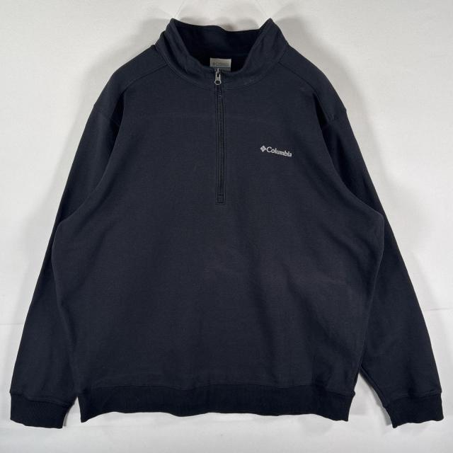 古着 コロンビア Columbia スウェット ハーフジップ トレーナー ワンポイントロゴ刺繍 大きいサイズ プルオーバー XL ブラック メンズ