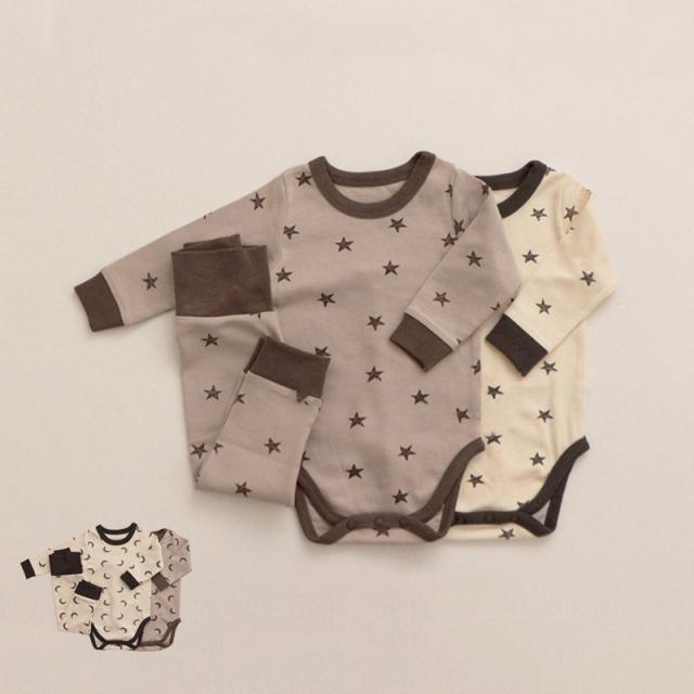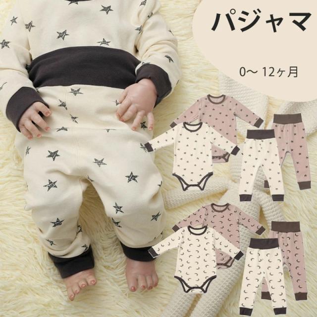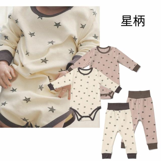ベビー服 長袖 ロンパースとパンツ ベビーパジャマ 女の子 男の子 0〜12ヶ月 ベビー肌着 星柄 月柄 新生児服 春 秋 冬 70 80 90cm