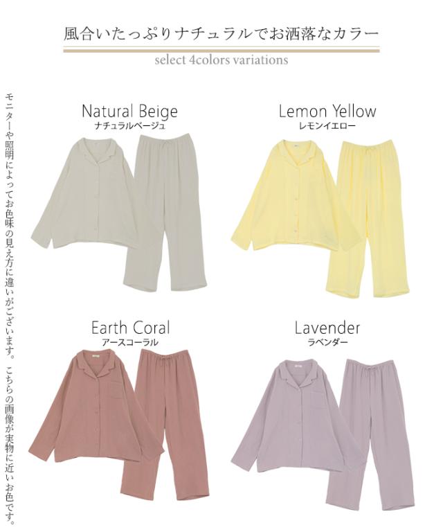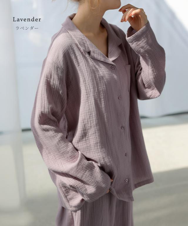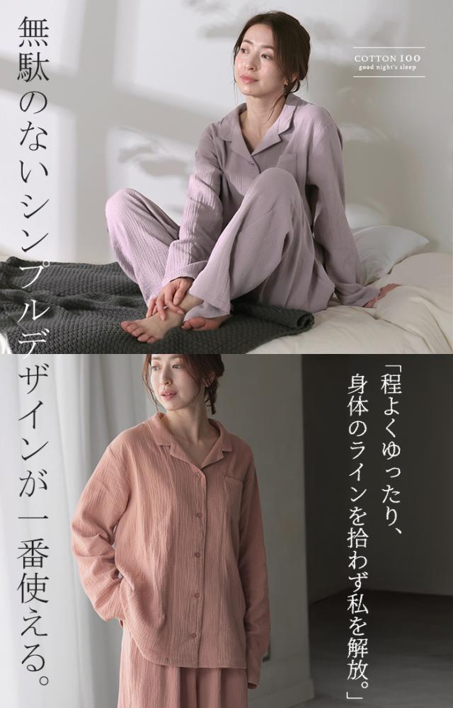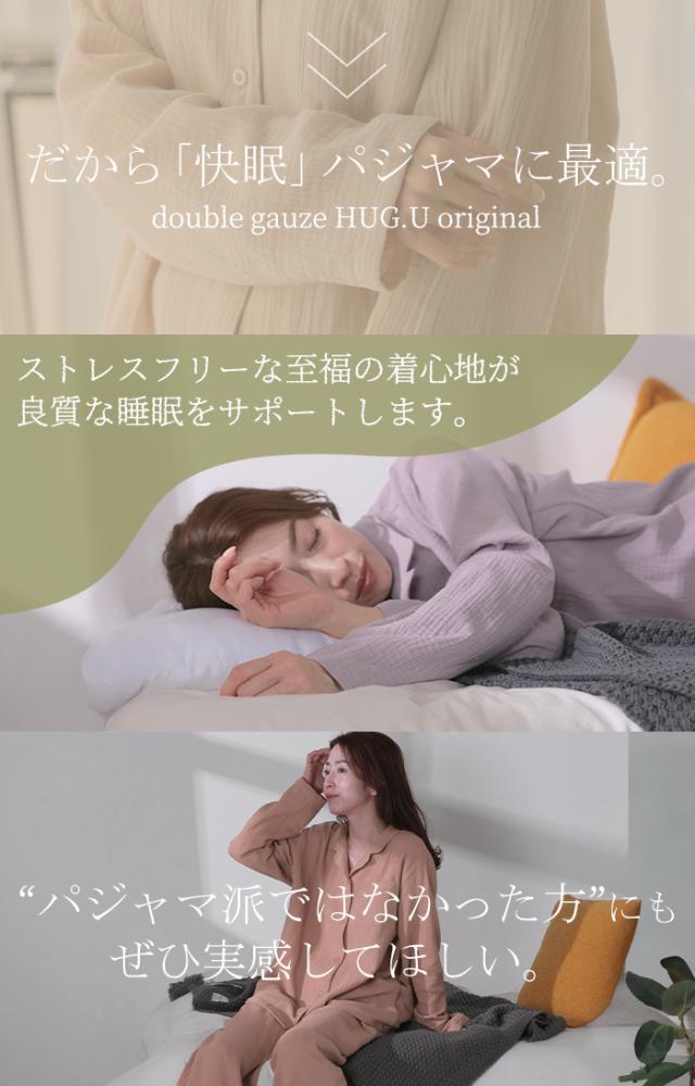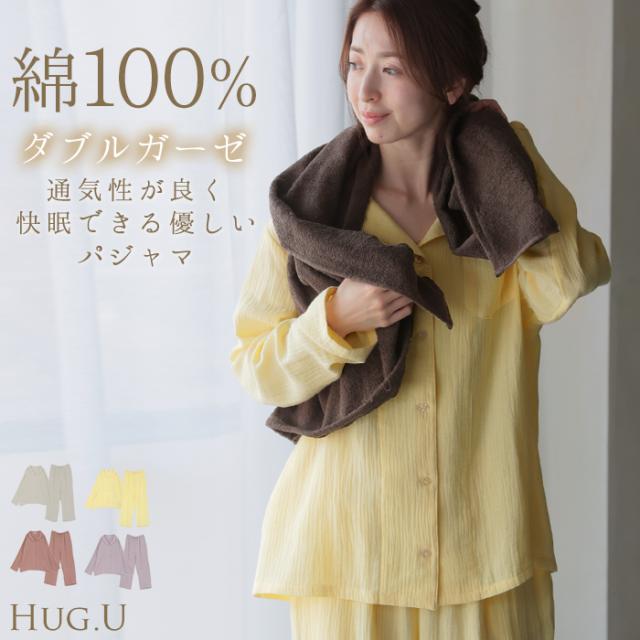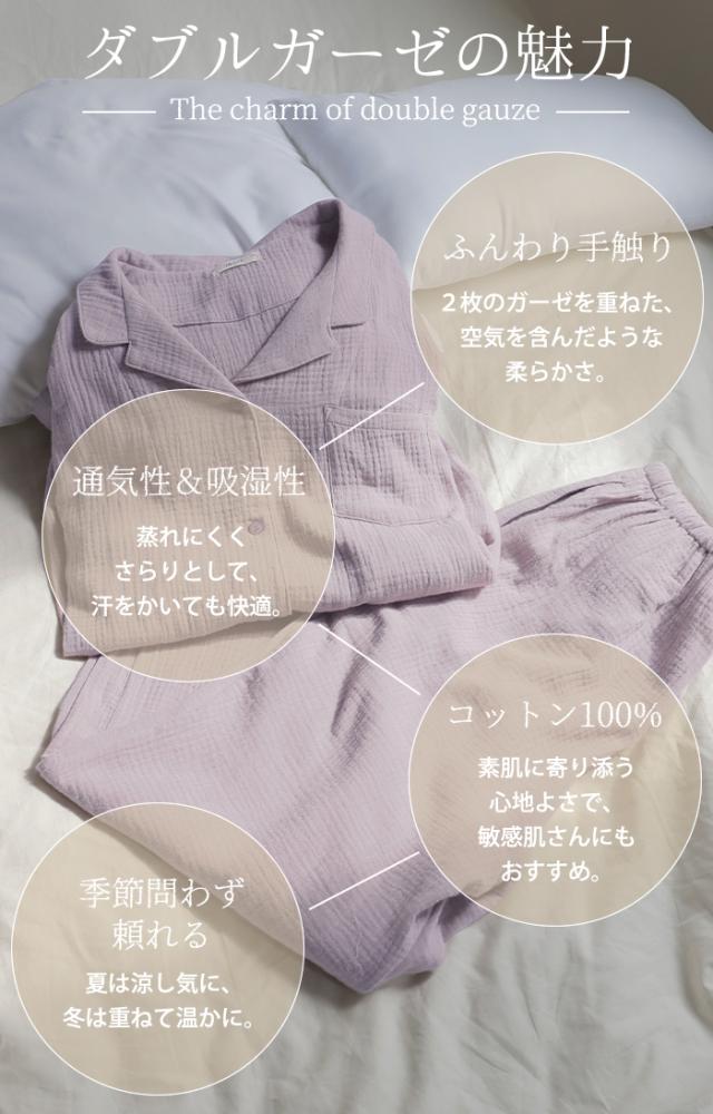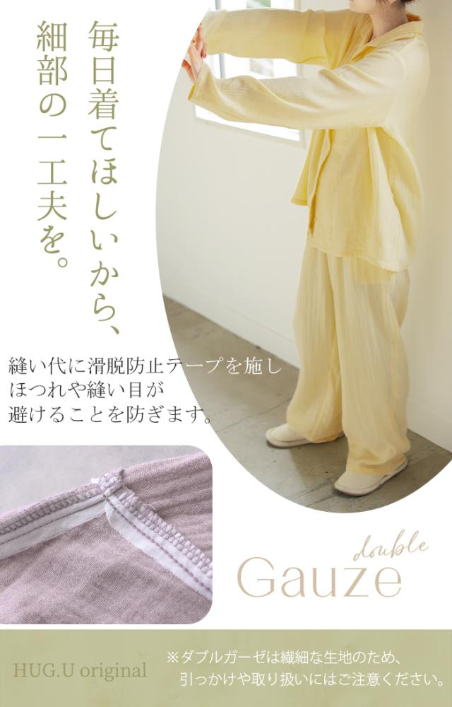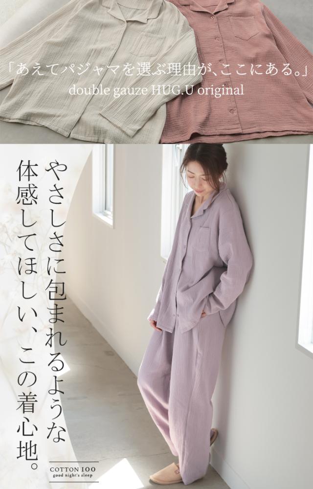 ルームウェア ダブル ガーゼ 綿100 セットアップ レディース パジャマ パンツ トップス チクチクしない 無地 長袖 部屋着 旅行 お泊り ゆったり コットン ダブルガーゼ ナイトウェア 夜 睡眠 体型カバー 大きいサイズ 紫 ベージュ 春 夏 HUG.U