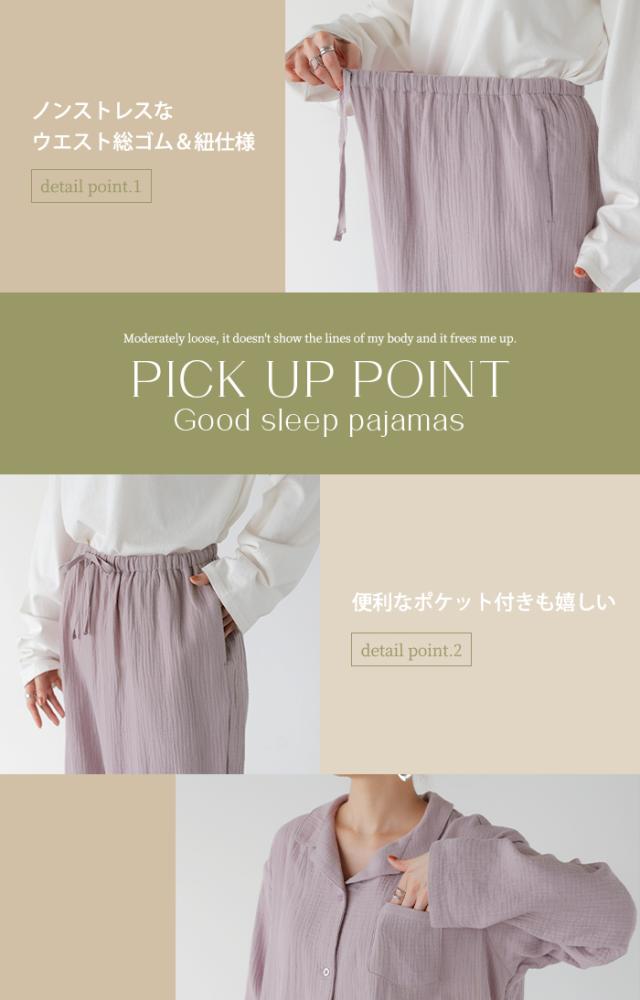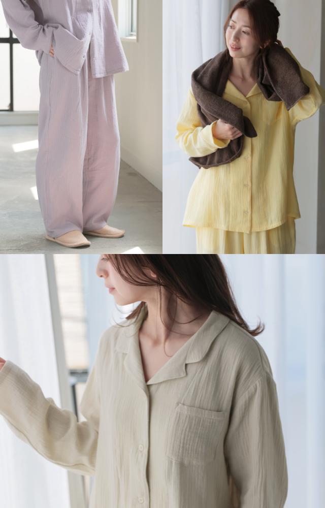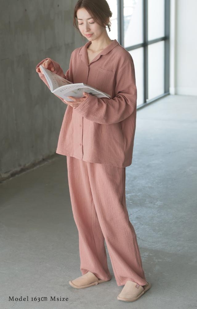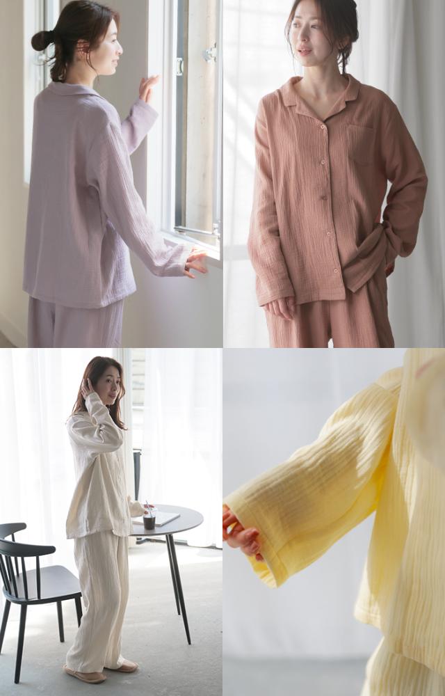 空気を含んでふんわり軽い綿100%ダブルガーゼ素材のパジャマです。