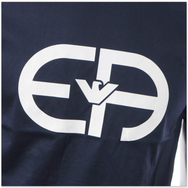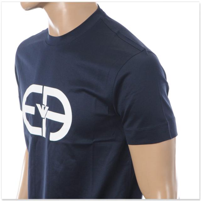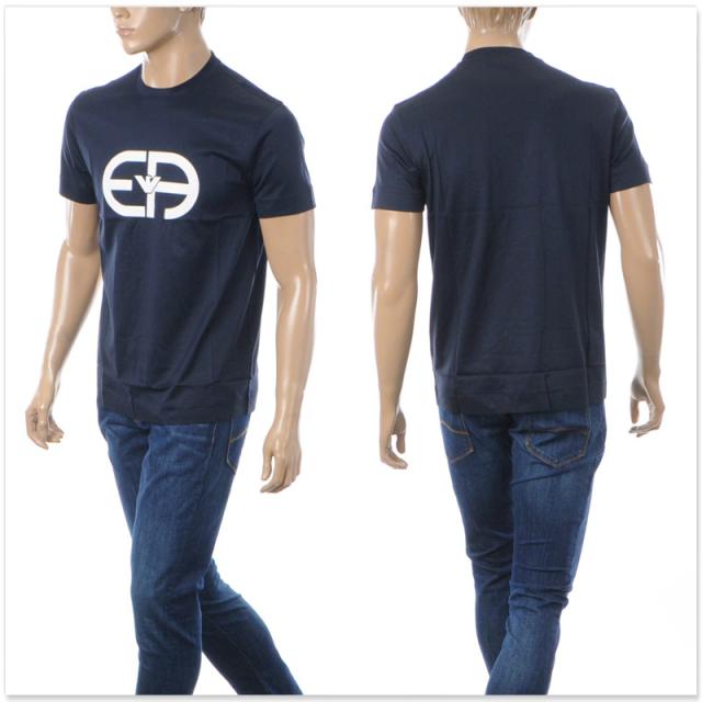 エンポリオアルマーニ EMPORIO ARMANI Tシャツ メンズ 8N1TF6 1JUVZ 半袖 クルーネック ダークネイビー レギュラーフィット ロゴ プリント 大きいサイズ 送料無料