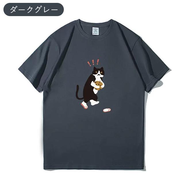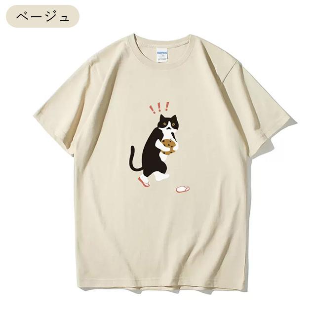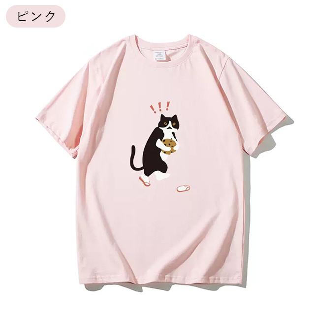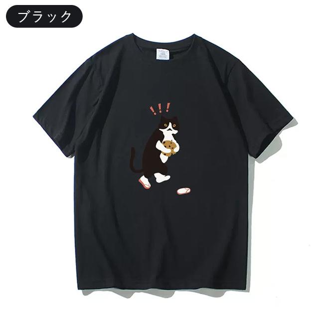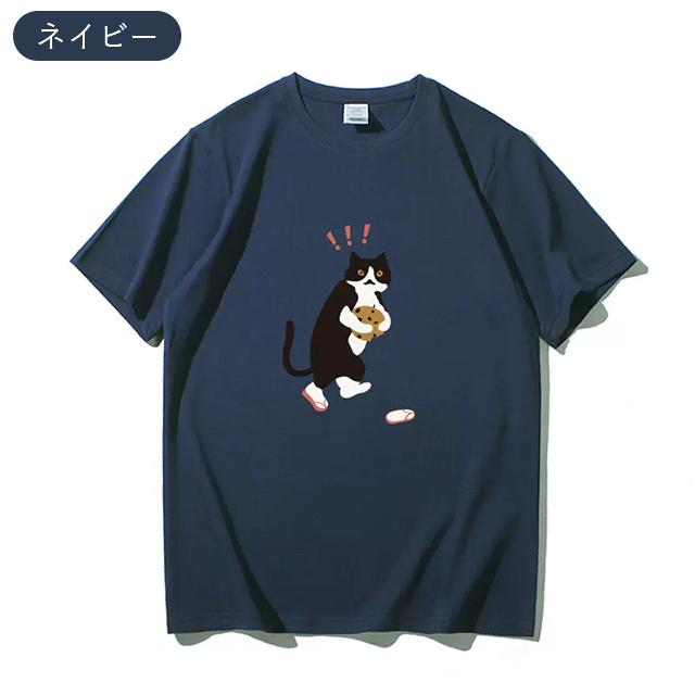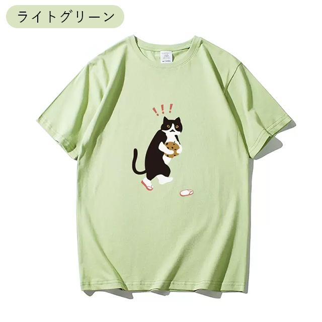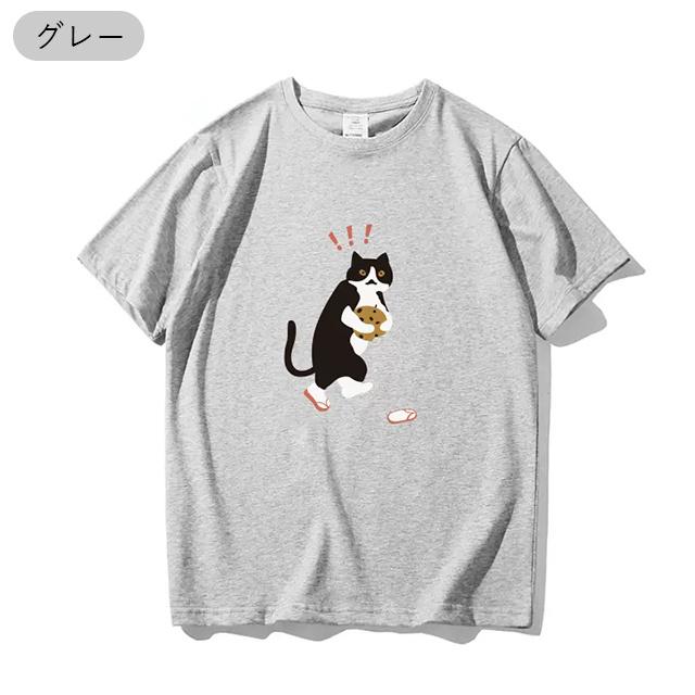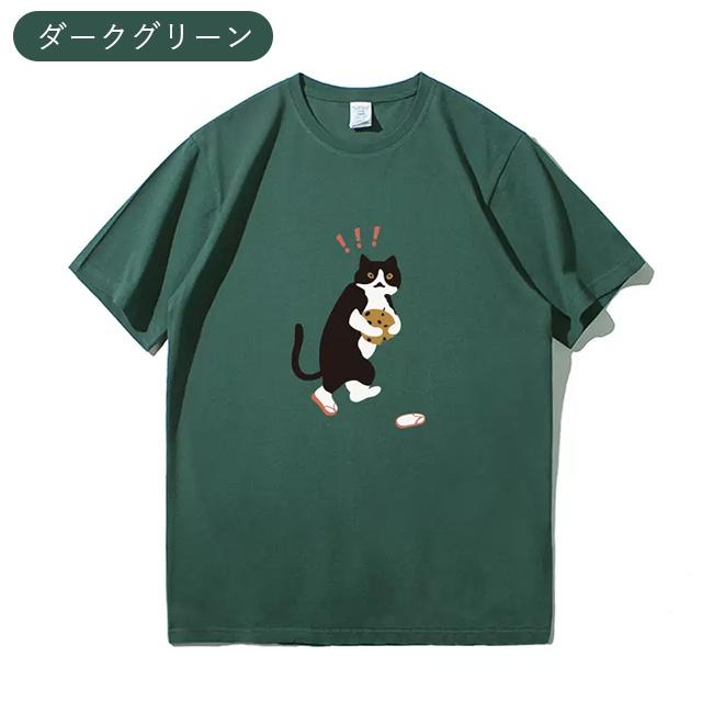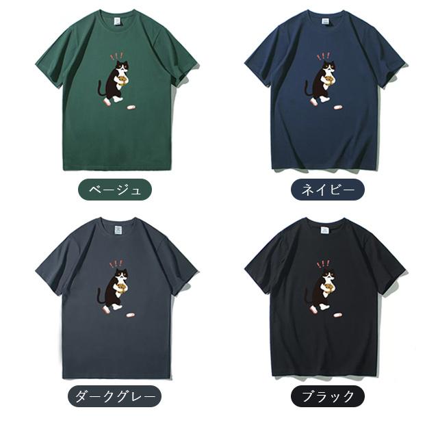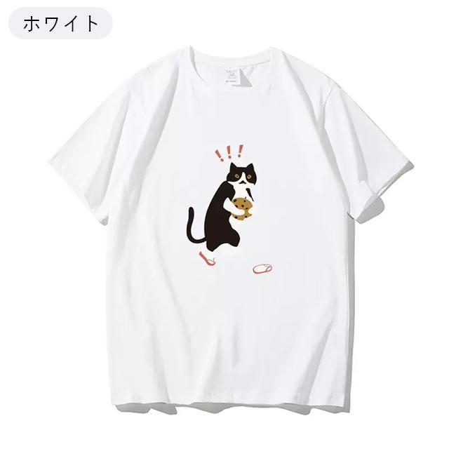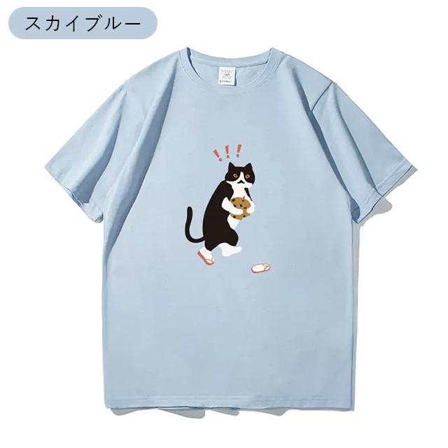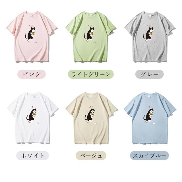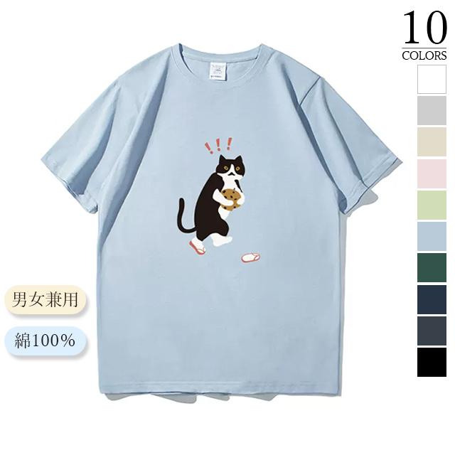 春新作 送料無料 ネコプリント 猫 ねこ コットン 半袖 Tシャツ レディース メンズ 男女兼用 体型カバー カジュアル おしゃれ ゆったり カットソー ラウンドネック 春 夏 秋 クルーネック お揃い 友達 通学 アウトドア 普段着 デイリー 新作