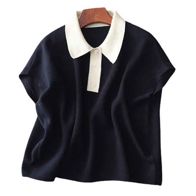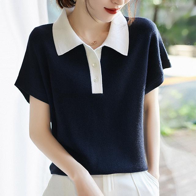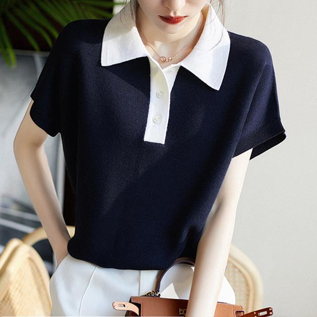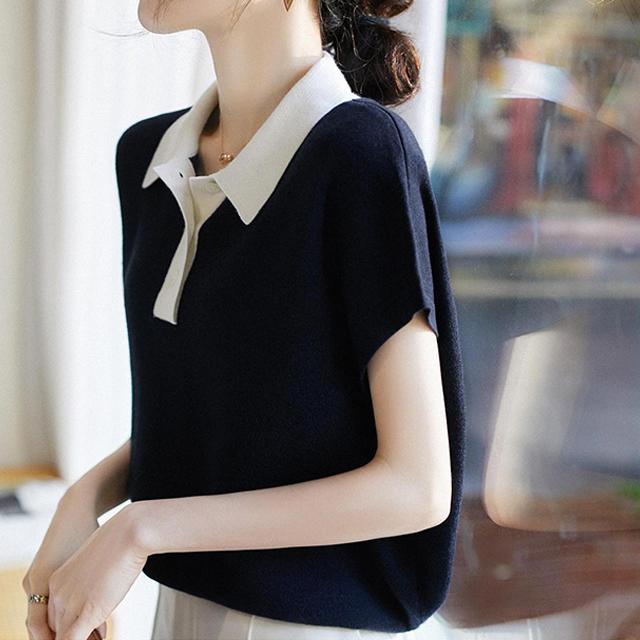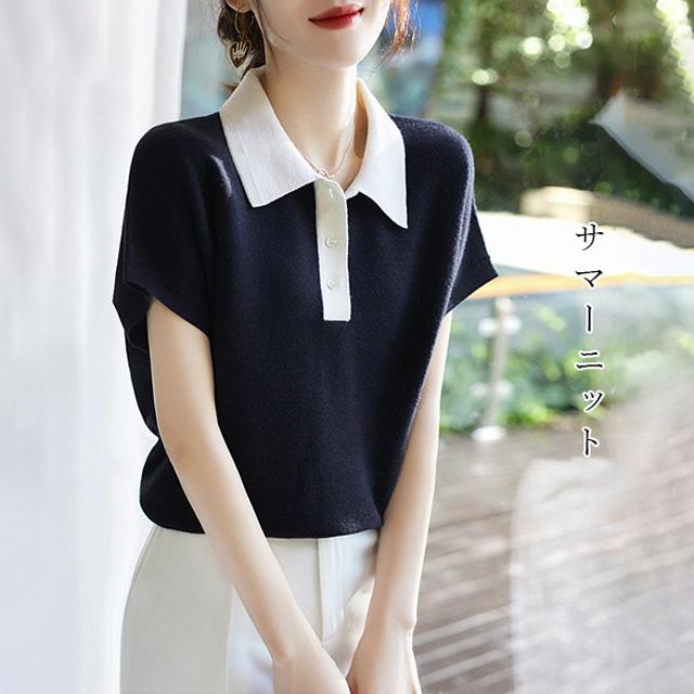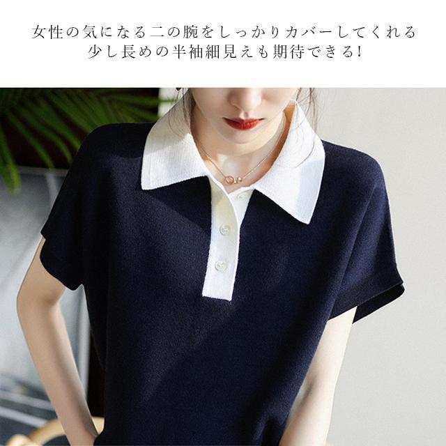 春新作 送料無料 ポロシャツ ニット トップス サマーニット レディース 半袖 フレンチスリーブ 5分袖 カットソー オフィスカジュアル 半袖ニット 無地 きれいめ 上品 大人 可愛い ベーシック体型カバー 接触冷感 ひんやり 涼しい