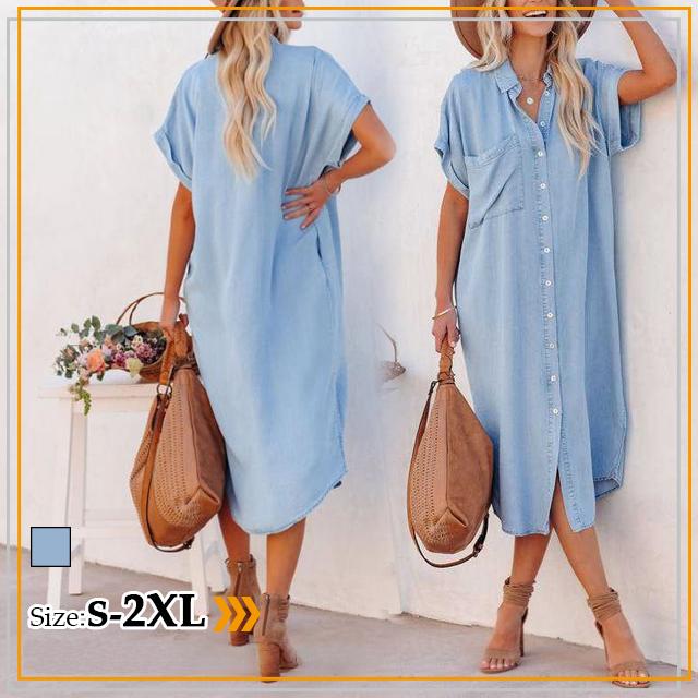 春新作 トップス 送料無料 ワンピース夏 シャツワンピース ジンーズシャツワンピース チュニック ストライプ 体型カーバー ミニワンピース スキッパーシャツ チュニックワンピース 韓国風