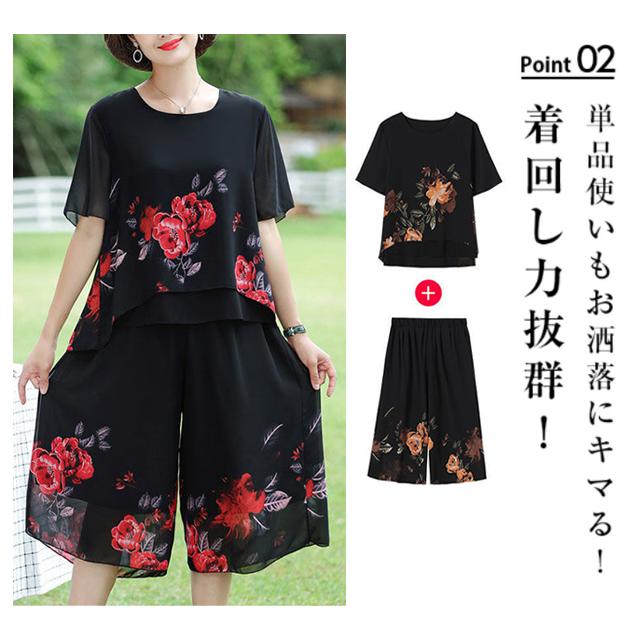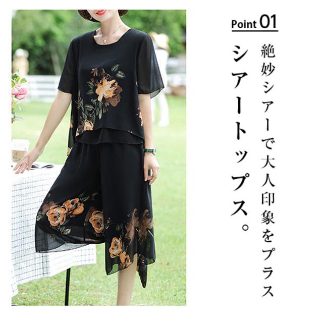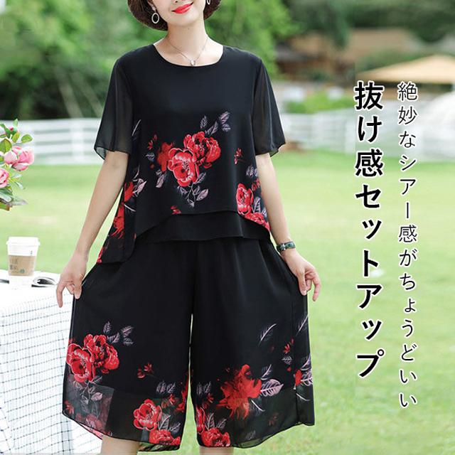 冬新作 送料無料 セットアップ レディース カジュアル 春 夏 上下セット シフォン ワイドパンツ ロング フォーマル 春 夏 半袖 着痩せ