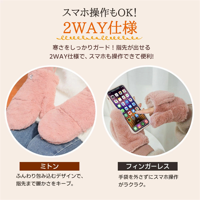 送料無料 春新作 手袋 手袋レディース 指なし ミトン レディース 2way かわいい おしゃれ 冬 グローブ てぶくろ スマホ 対応 フェイクファー 裏ボア ふわふわ もこもこ 女性冬用手袋 可愛い 防風 防寒 裏起毛 フワフワ 自転車 リボン