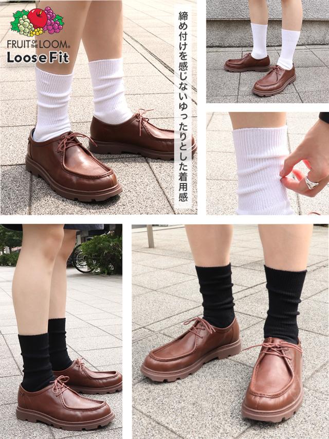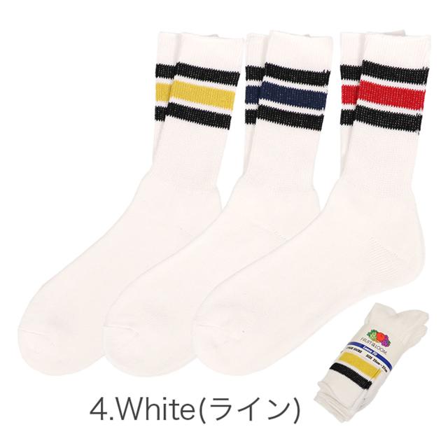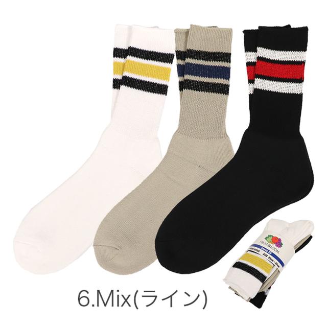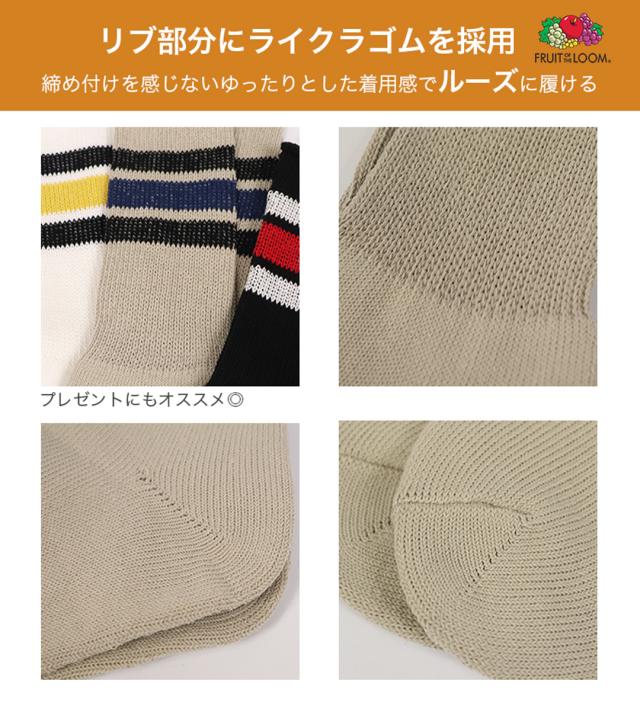 【3足セット】FRUIT OF THE LOOM ライン ソックス 無地 ルーズフィット フルーツオブザルーム メンズ 靴下 クルー スリークォータース リブ シンプル カジュアル