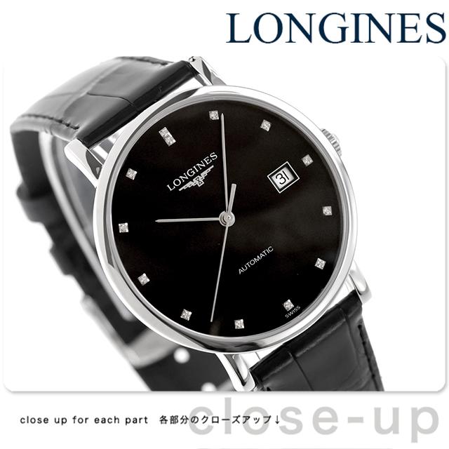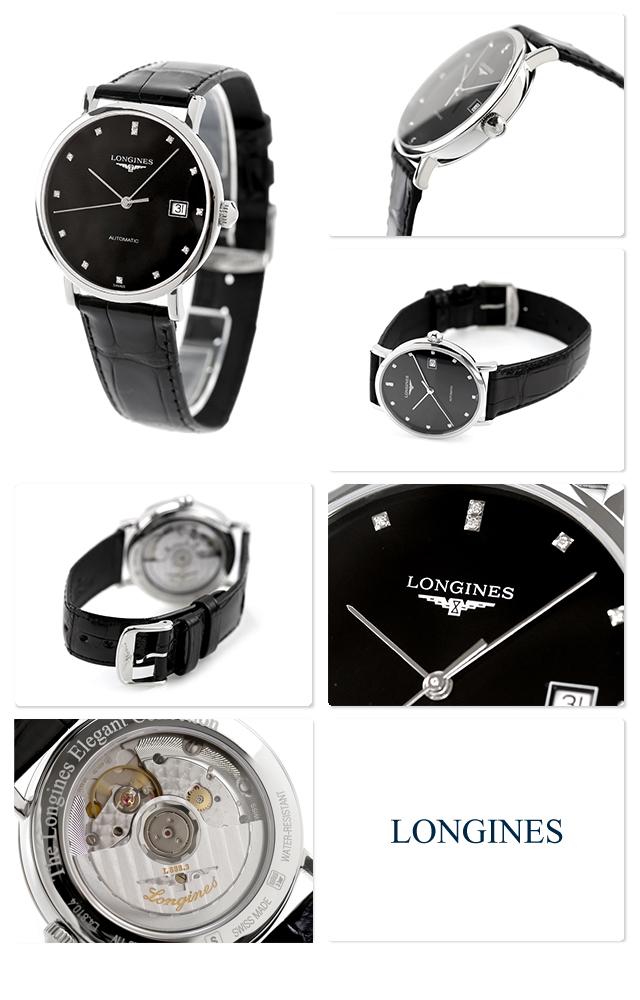 ロンジン エレガント 自動巻き 腕時計 ブランド メンズ LONGINES L4.810.4.57.2 アナログ ブラック 黒 スイス製 おしゃれ 防水 プレゼント 男性 実用的