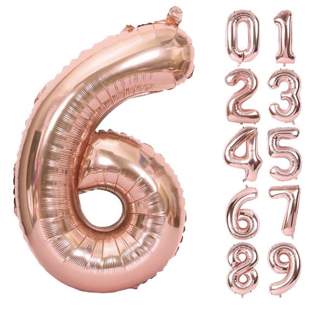 HIYEAR 誕生日 飾り付け 数字 バルーン 大きい 40インチ 約90cm アルミ風船ローズゴールド ハッピーバースデー (6 ローズゴールド)