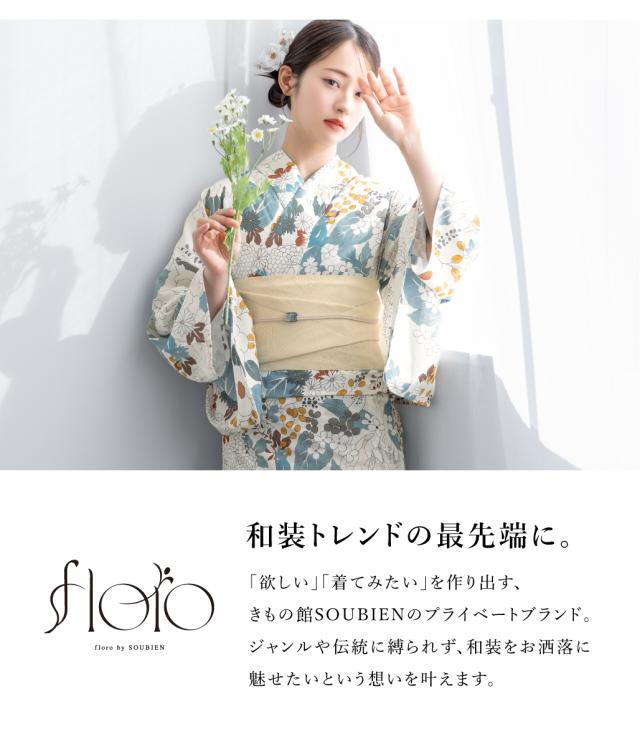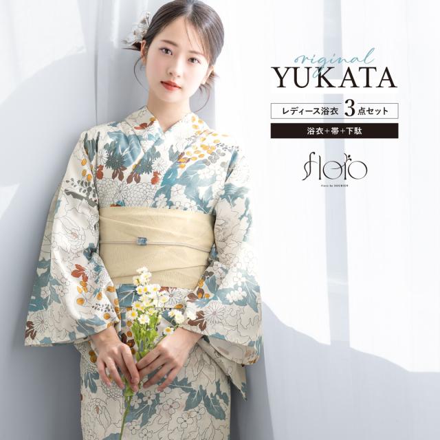 SOUBIENのプライベートブランド『floro by SOUBIEN』の華やかな女性用浴衣3点セットです。