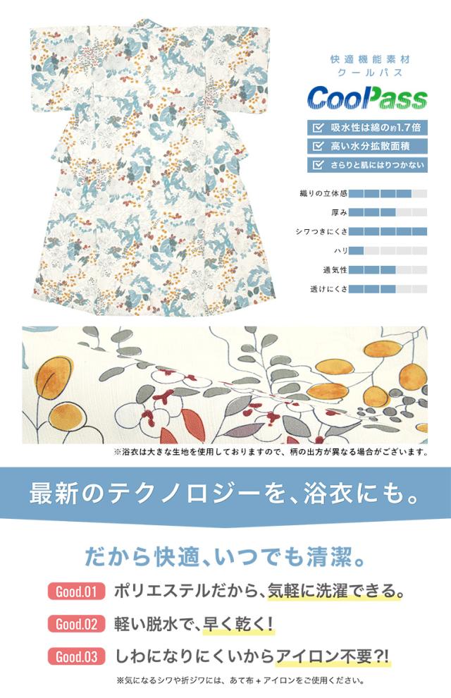生地は変わり織りで、ひんやりとした肌触りで、吸汗性と速乾性の繊維のCoolPassを使用しています。