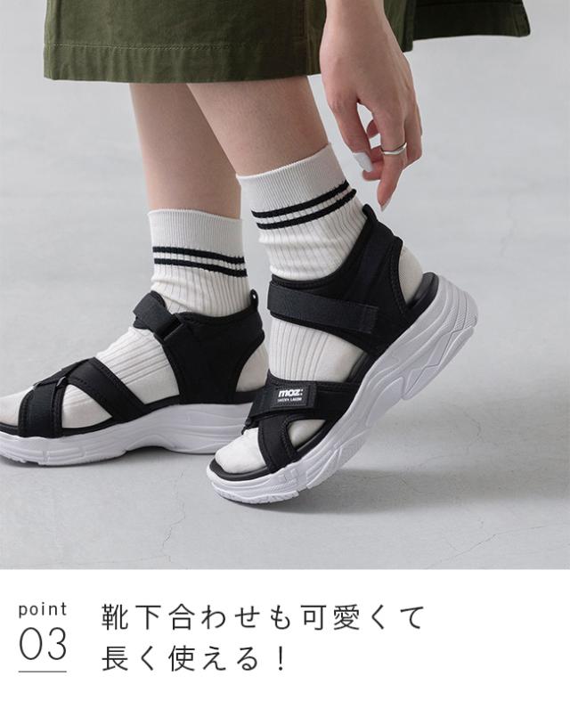モズ moz サンダル スポーツサンダル スポサン 脱げない スポーティ レディース 厚底 歩きやすい 疲れにくい ストラップ きれいめ おしゃれ 黒 ブラック 22cm 25cm 送料無料
