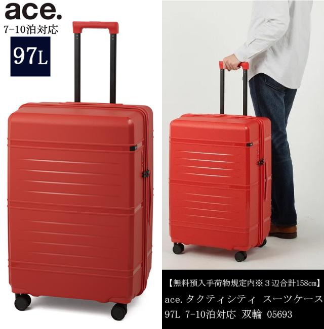 【SALE】【7-10泊対応】【送料無料】ace./エース タクティシティ スーツケース 97L インナーポーチ付き 双輪 05693 ジッパーキャリー ポリプロピレン 無料預入手荷物サイズ