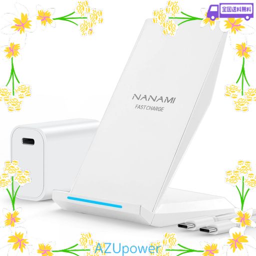 NANAMI ワイヤレス充電器 (USB-C 20W出力の急速充電器付属) PSE認証済 IPHONE 17/16/15/14/13/12(PRO/PRO MAX/AIR/PLUS)/SE3/11(PRO)/XR/8(PLUS) GALAXY