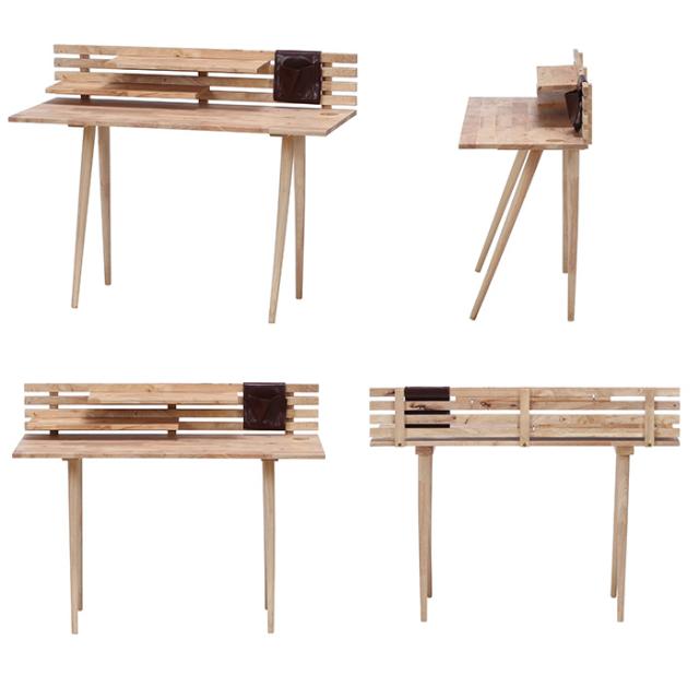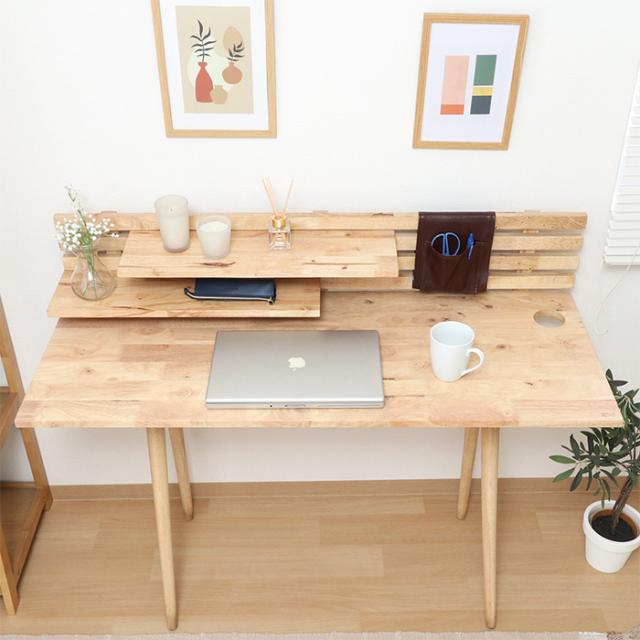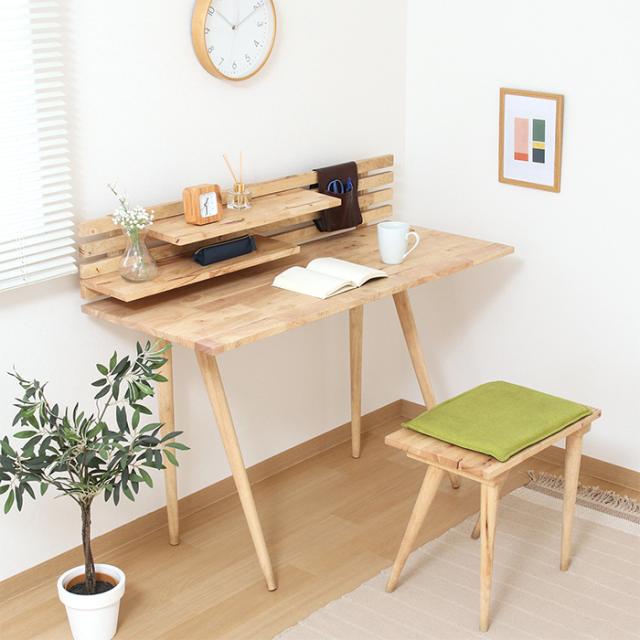 天然木の風合いを活かした収納付きデスク&スツールセット