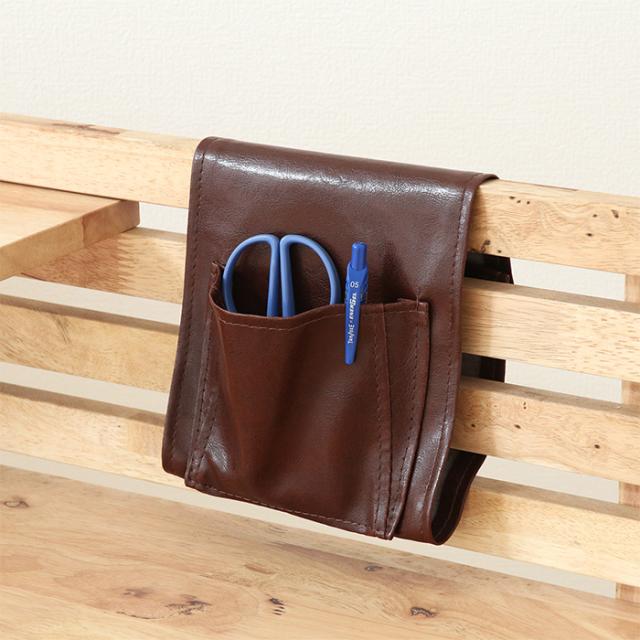 レザー調の材のポケットにはペンやメガネなどの小物を収納できます。