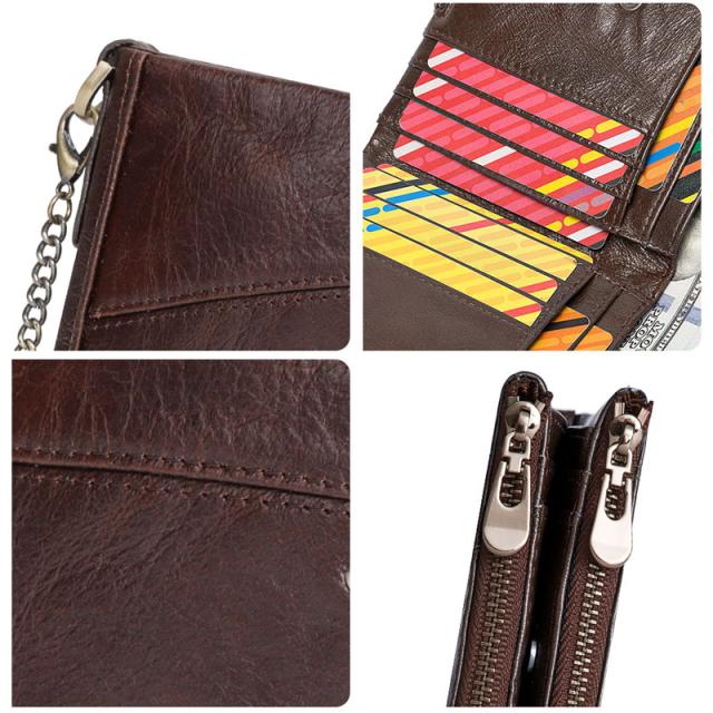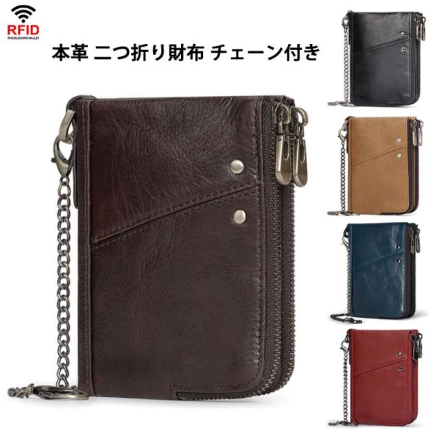 本革財布 メンズ レディース 二つ折り財布 RFID スキミング防止 二つ折り レザー ウォレット 盗難防止 チェーン付き コインケース ジッパー 柔らかい 札入れ カード入れ 小銭入れ 丈夫 コンパクト おしゃれ 人気 プレゼント スタイリッシュ 折りたたみ財布 カード12枚収納