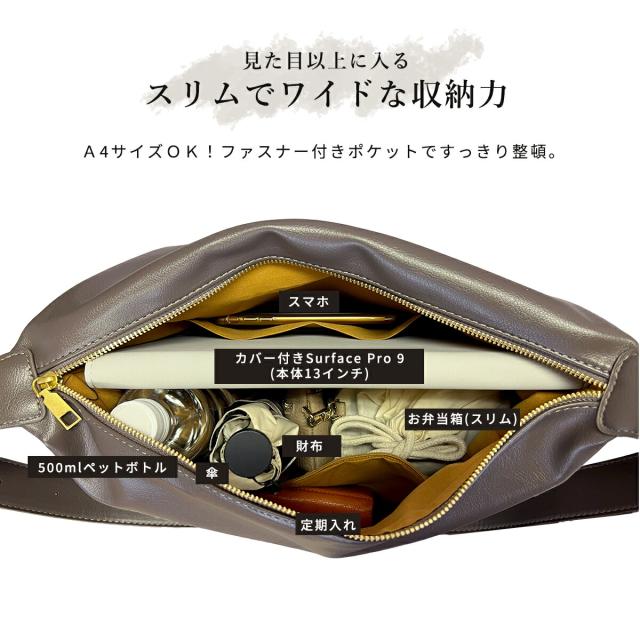 斜めがけでもトートバッグ風にも持てる2WAY仕様でその日のコーデに合わせて自由にスタイルチェンジ