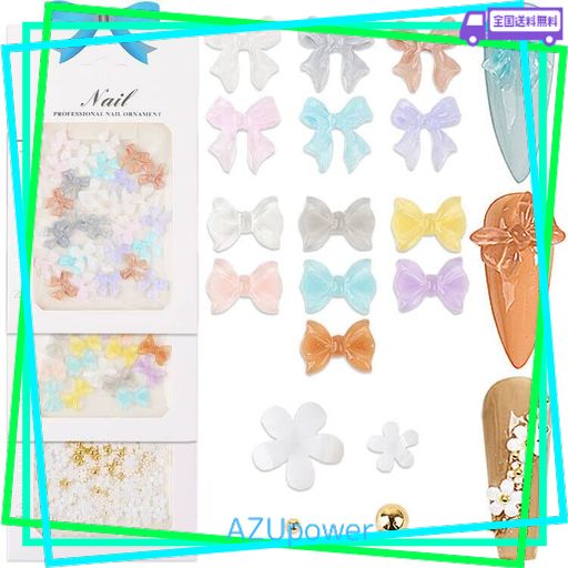 【2タイプのリボン】透明なキャンディ色のリボン2種類あります。立体感があり存在感が抜群です。ほかのネイルパーツと組み合わせて使っても単品使いも可能です。カラーのバリエーションが豊富で、様々なネイルが作れます。