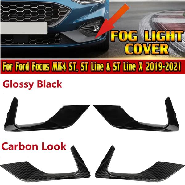フォード フォーカス MK4 ST、ST ライン & ST ライン X 2019-2021 光沢のある黒/カーボンファイバールックフォグライトカバー左 + 右