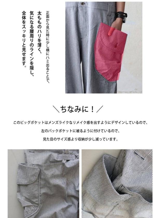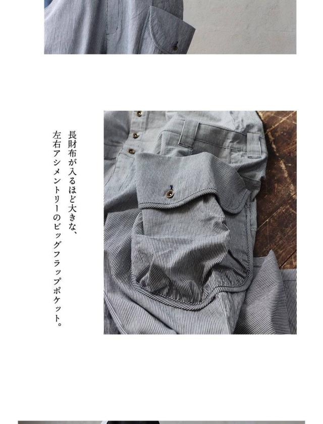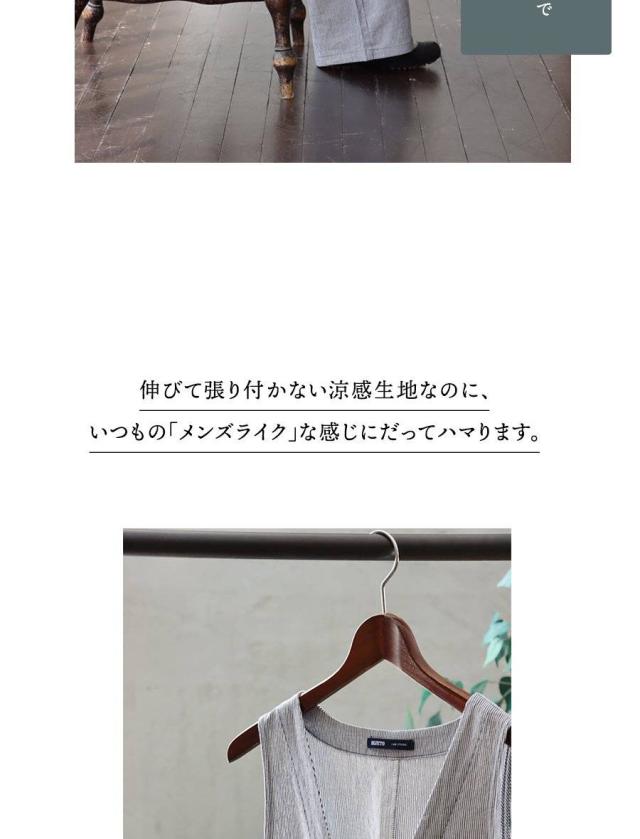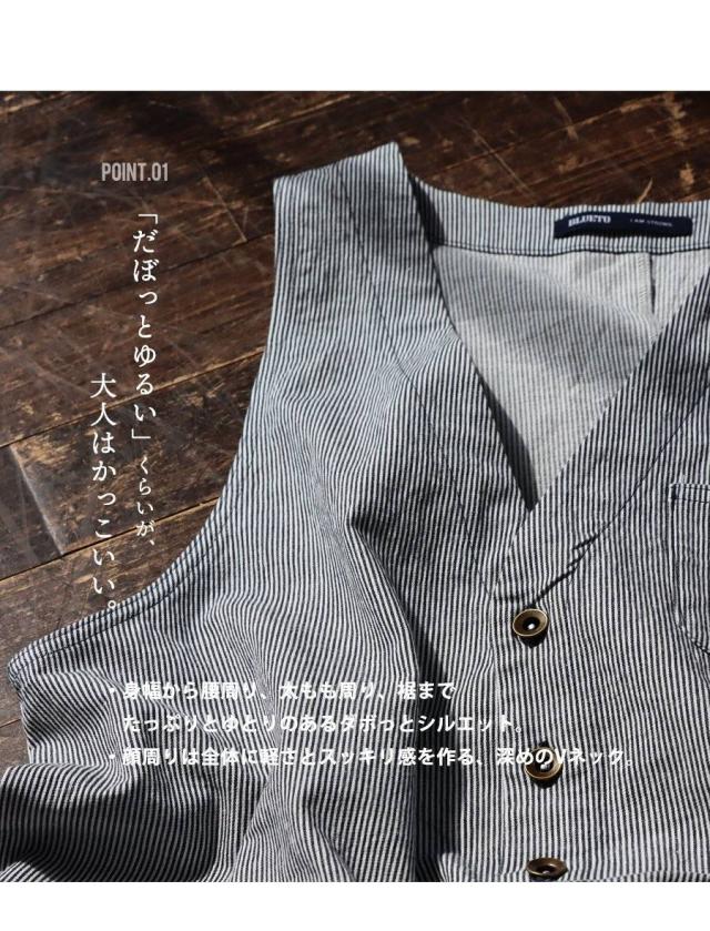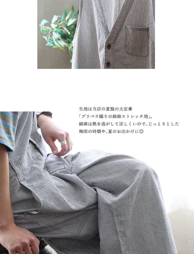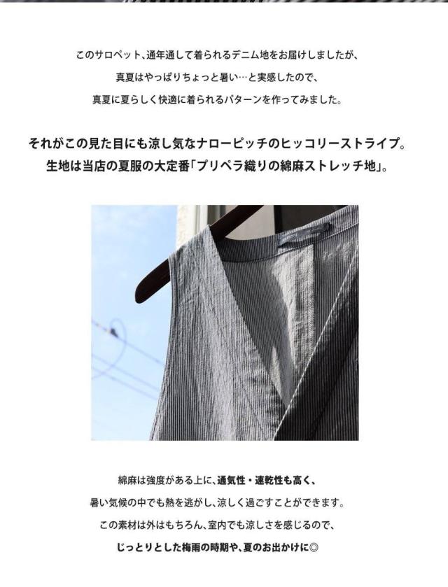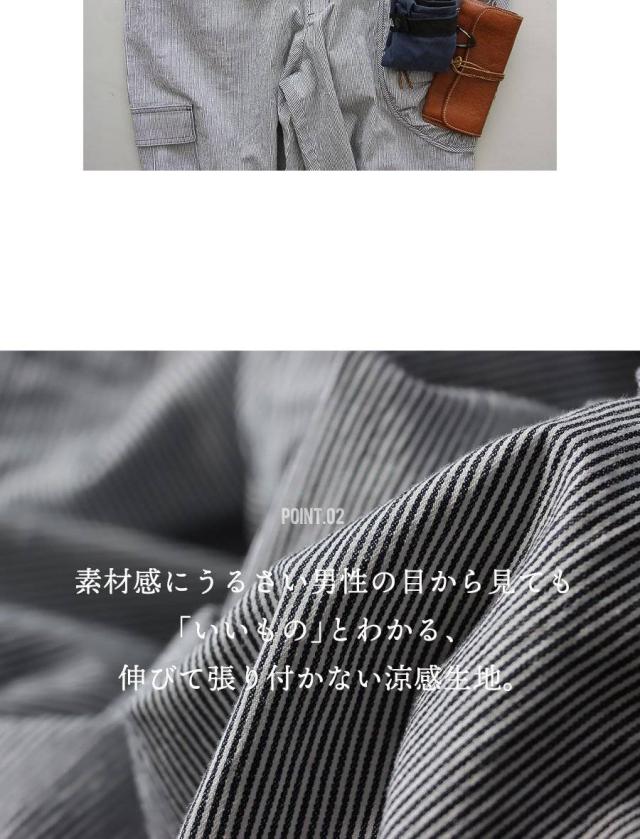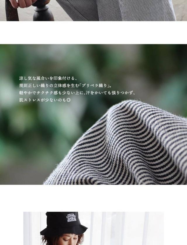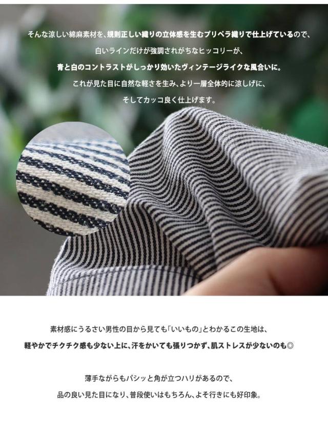 ・通気性が良く、夏でも涼しく蒸れない綿麻素材のヒッコリーストライプ。