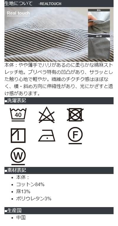 [素材]本体:コットン84% 麻13% ポリウレタン3%