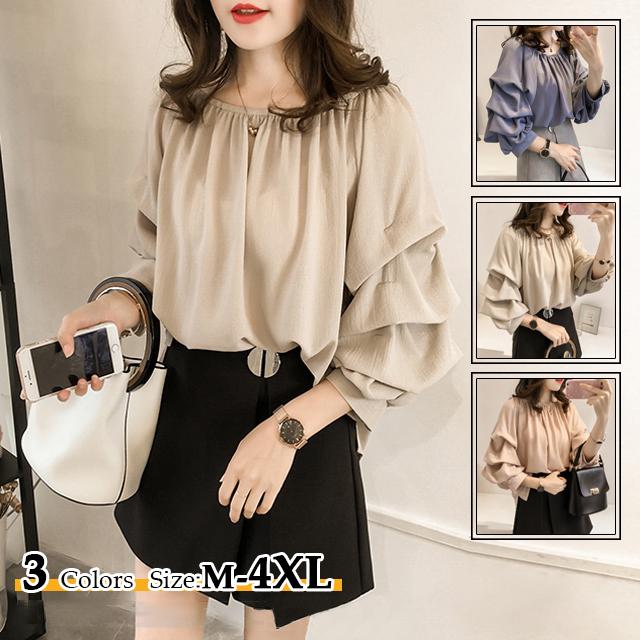 春新作 トップス 新作 送料無料 ブラウス レディース ボリューム袖バルーンプルオーバー レディース 春 夏シャツ 大きいサイズ 体型カバー 韓国 ゆったり 20代 40代 4XL 5XL